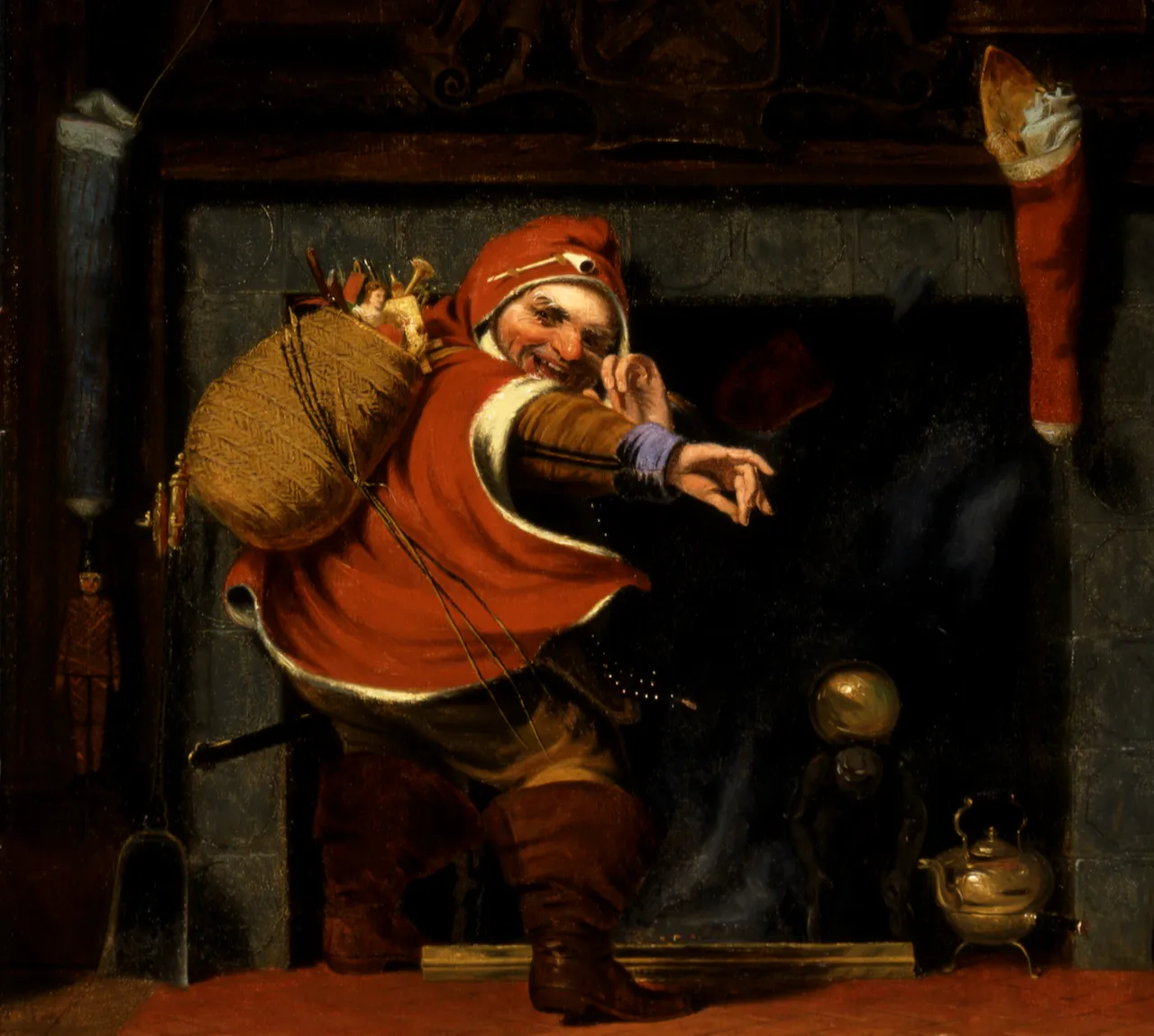 那么,为什么19世纪纽约发展起来的关于圣尼古拉斯和圣诞老人的广泛文献中没有提到黑色圣诞老人呢?我们不能完全排除1827年《绅士杂志》中描述的桑迪·克劳斯并不是一个真实的纽约现象,而是某位作者的过于活跃的想象力或一群“年轻顽童”的极不具代表性的焦点小组的产物。毕竟,这只是一个杂志文章。但我认为我已经提供了足够的证据证明这样的角色是合理的,想出理由也并不难——随着圣诞老人从一个孩子们低声谈论的角色变成一个成年人书写的角色,他自然会不再被认为是黑色的。