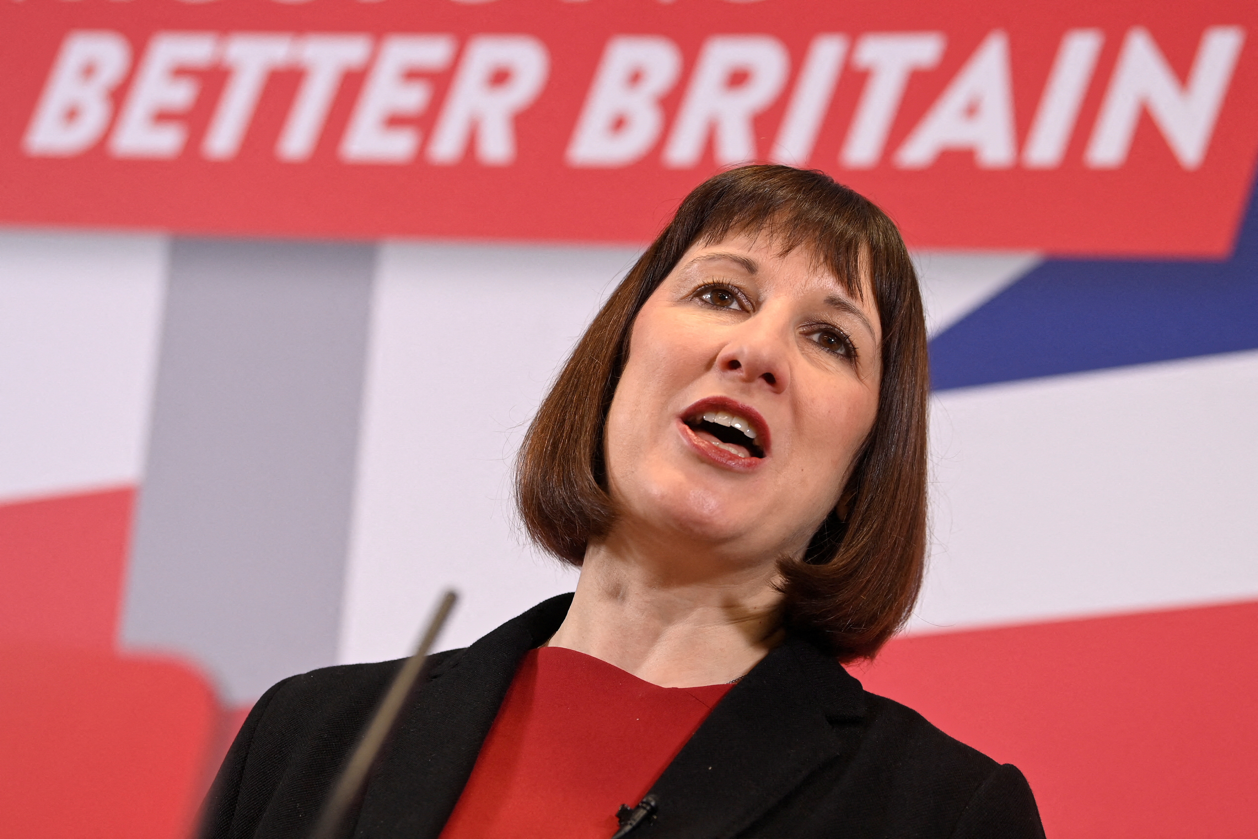英国影子财政大臣雷切尔·里夫斯在2023年2月27日的伦敦工党活动上讲话。路透社/Toby Melville/文件照片