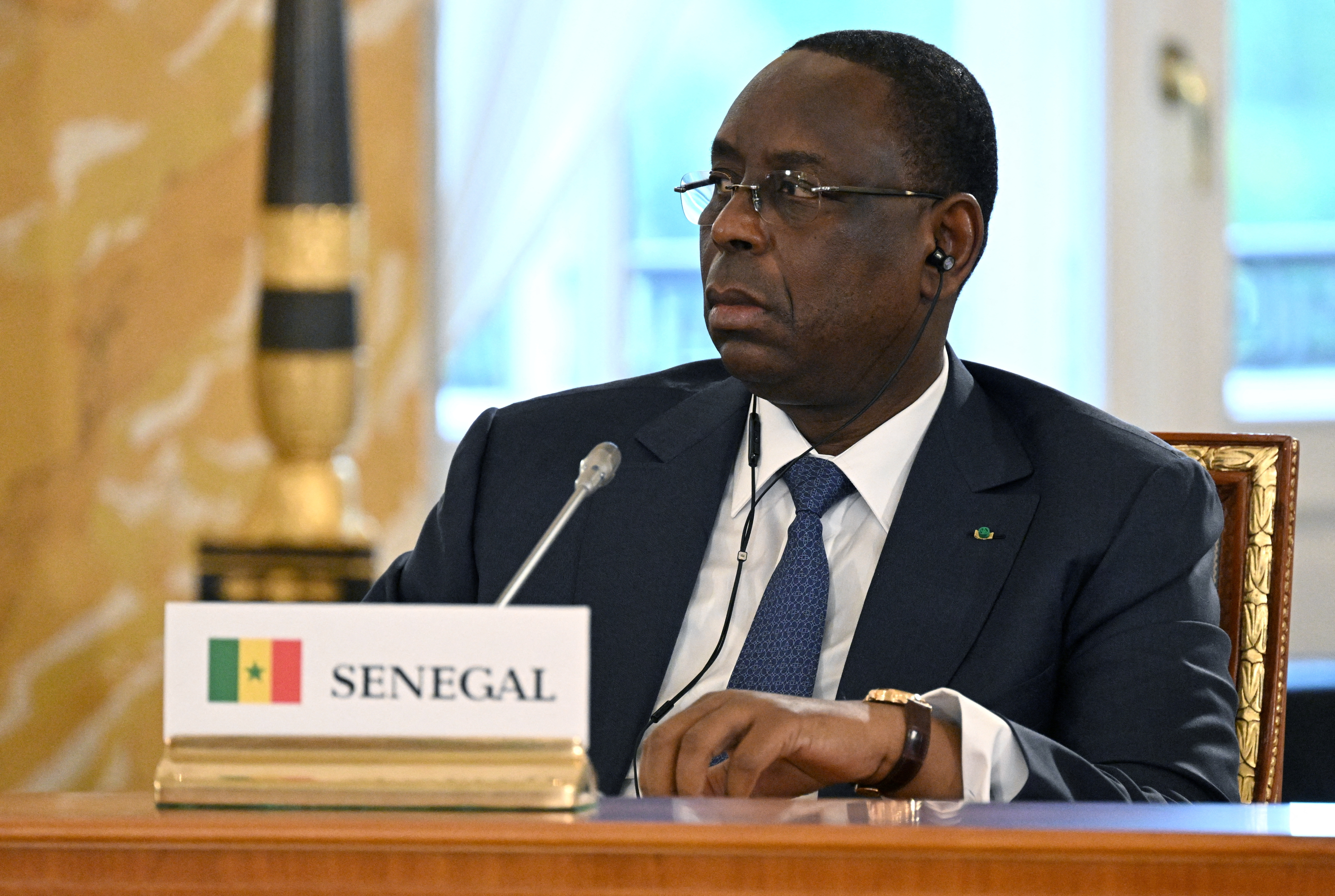 普京在圣彼得堡附近的一座宫殿里与塞内加尔、埃及、赞比亚、乌干达、刚果共和国、科摩罗和南非代表举行的会谈开始时强调了俄罗斯对非洲的承诺。