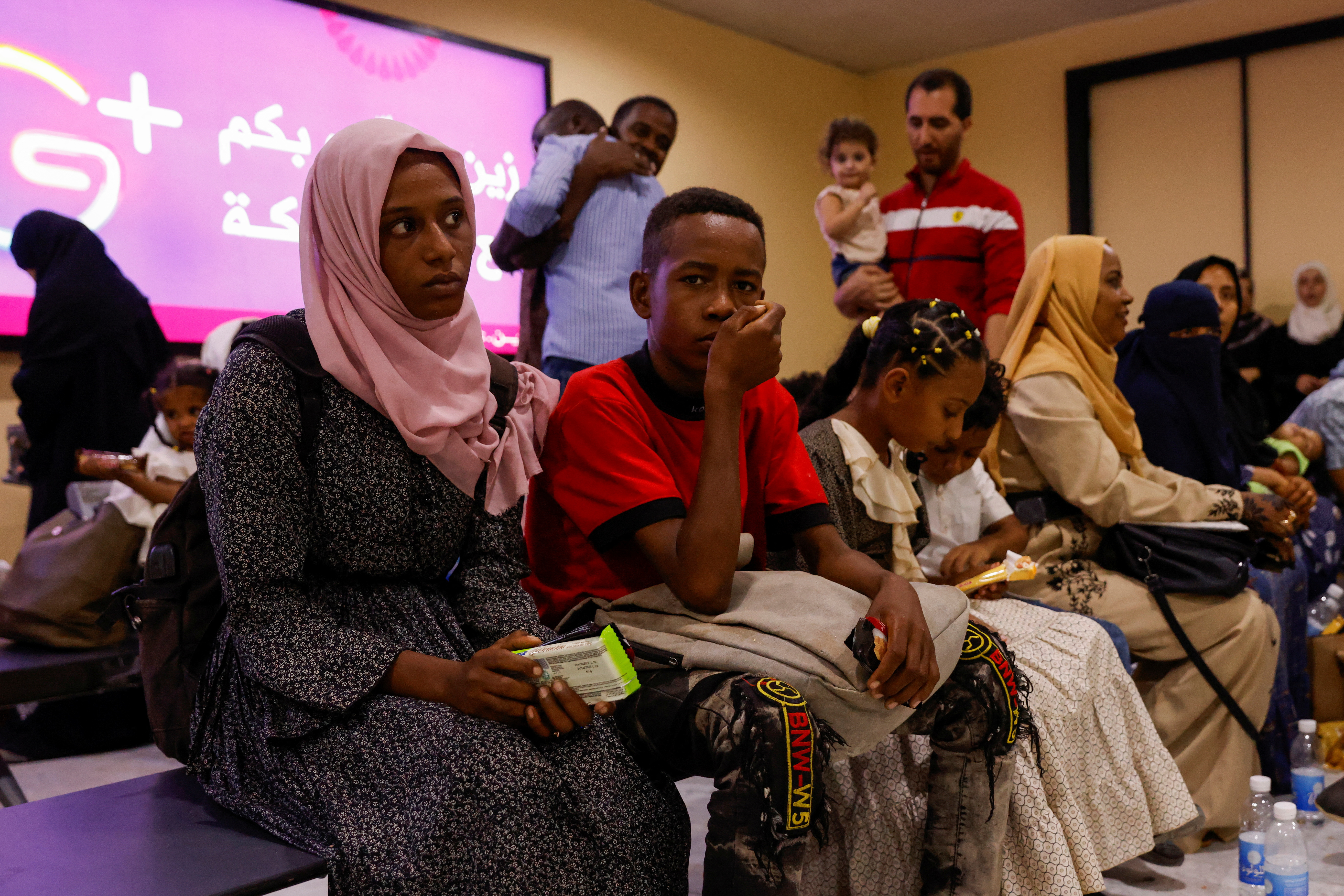 被伊拉克军用飞机从苏丹撤离的人们,出现在伊拉克巴格达国际机场,2023年6月18日。路透社/Saba Kareem 摄