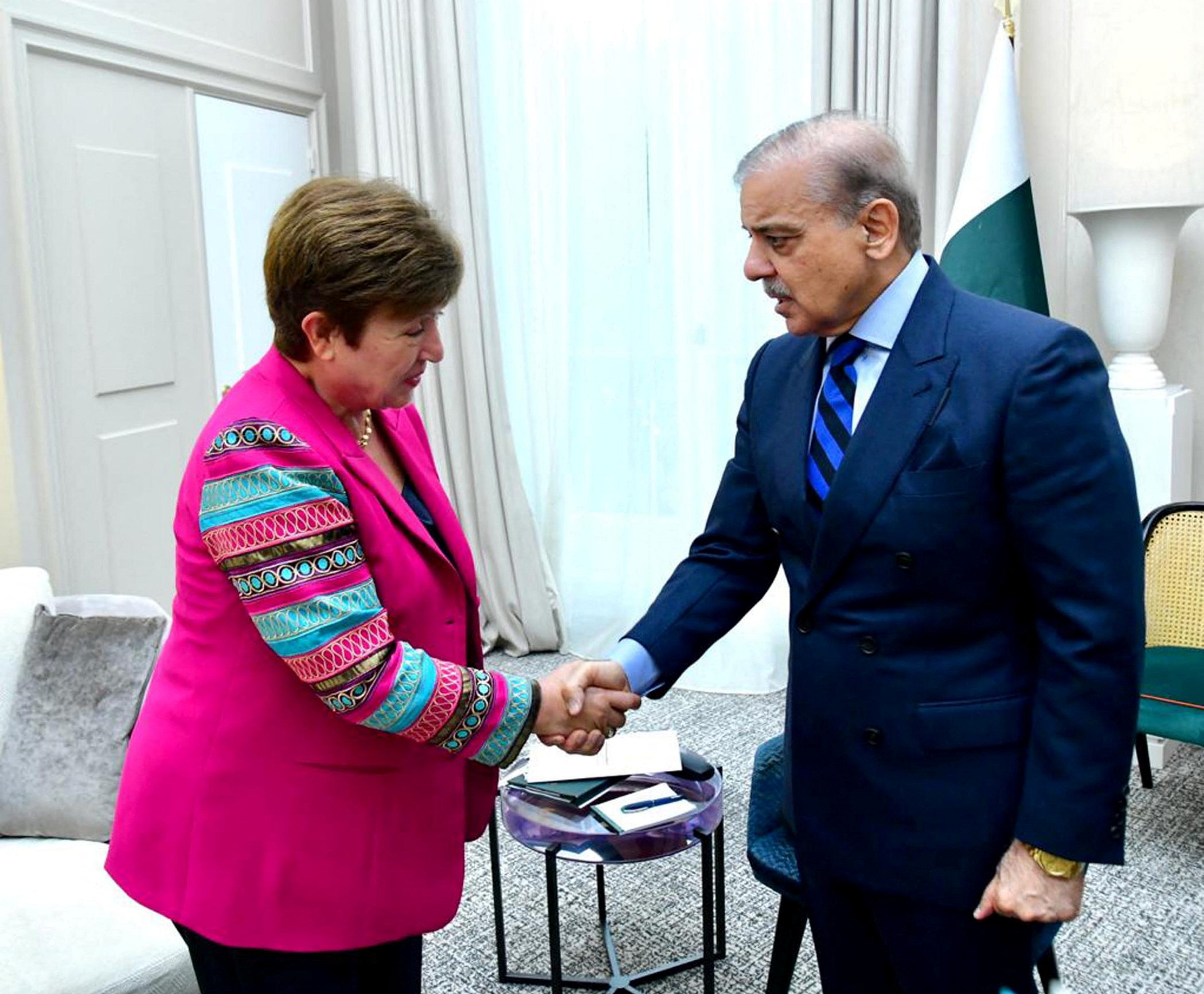 巴基斯坦总理谢赫巴兹·谢里夫于2023年6月22日在法国巴黎会见了国际货币基金组织(IMF)总经理克里斯塔利娜·乔治耶娃。新闻信息部(PID)/路透社/文件照片