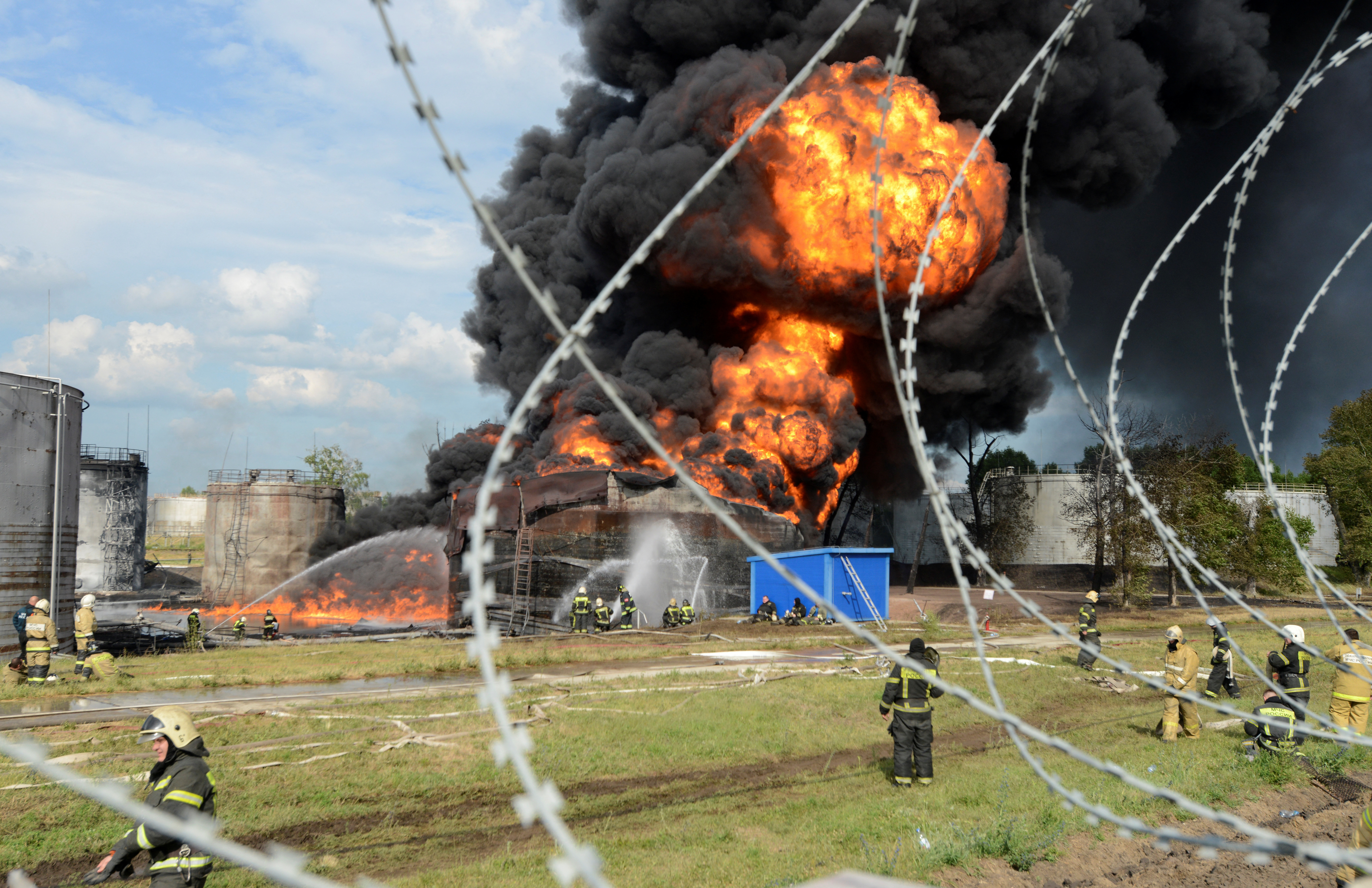 一架直升机在沃罗涅日附近向他们开火,就在直升机飞过后不久,路透社获得的视频显示一个燃烧的火球在那里的一个燃料库爆炸。