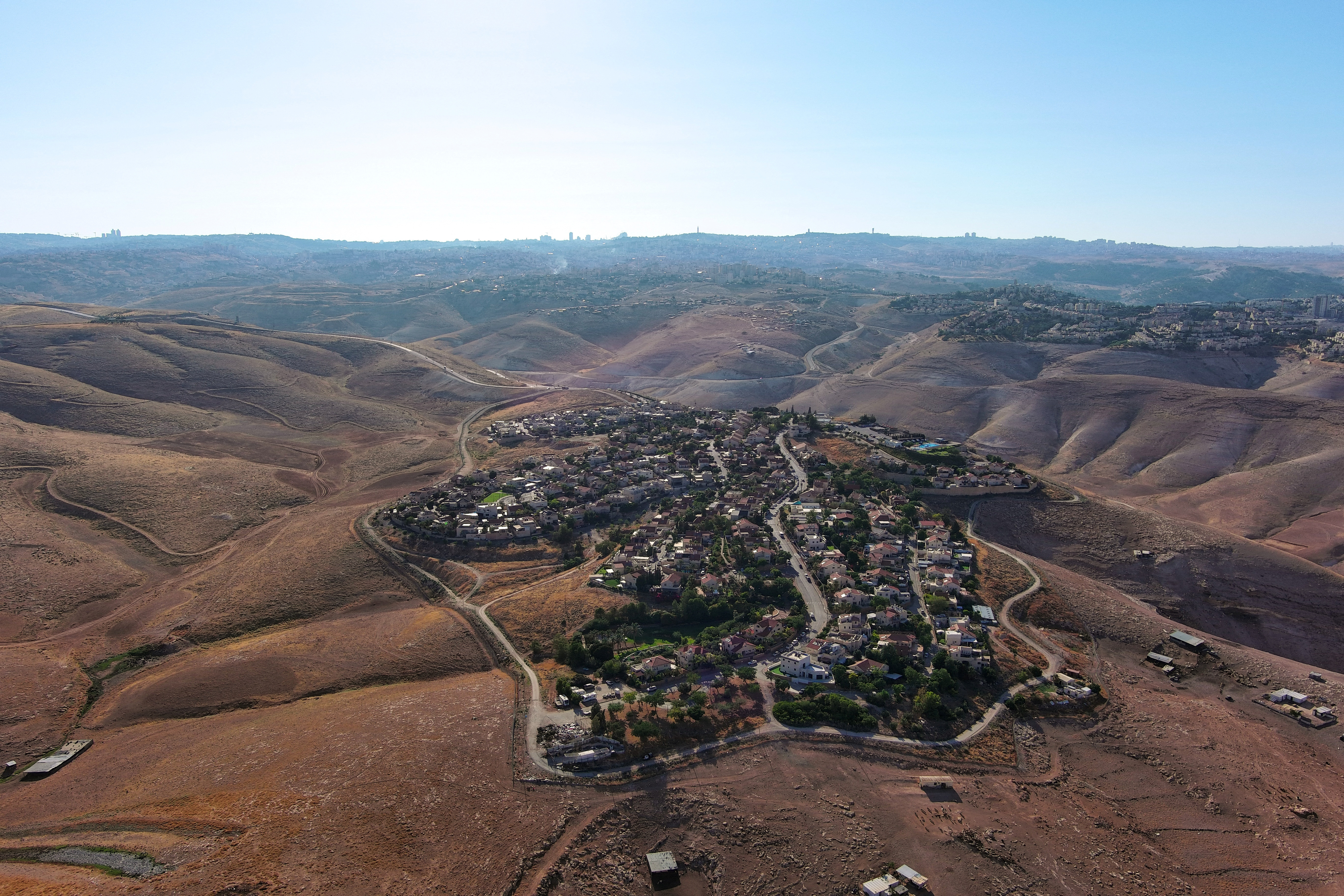 一张航拍照展示了2023年6月25日以色列占领的约旦河西岸的犹太定居点凯达尔。路透社/伊兰·罗森伯格