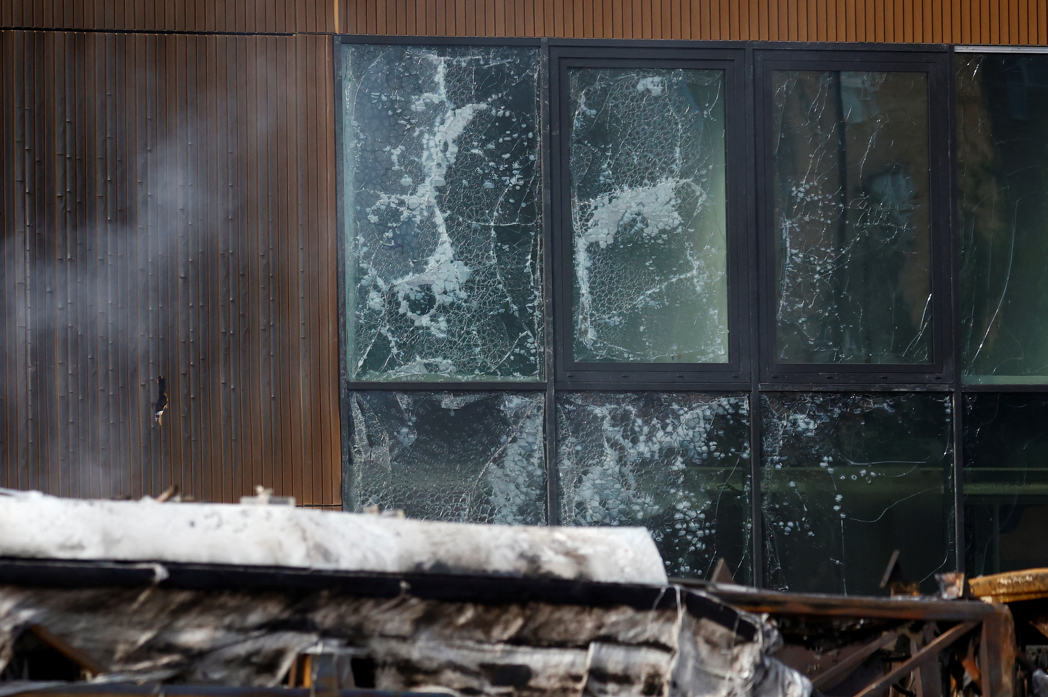 巴黎奥林匹克游泳训练中心的外立面遭到暴徒破坏 | 路透社