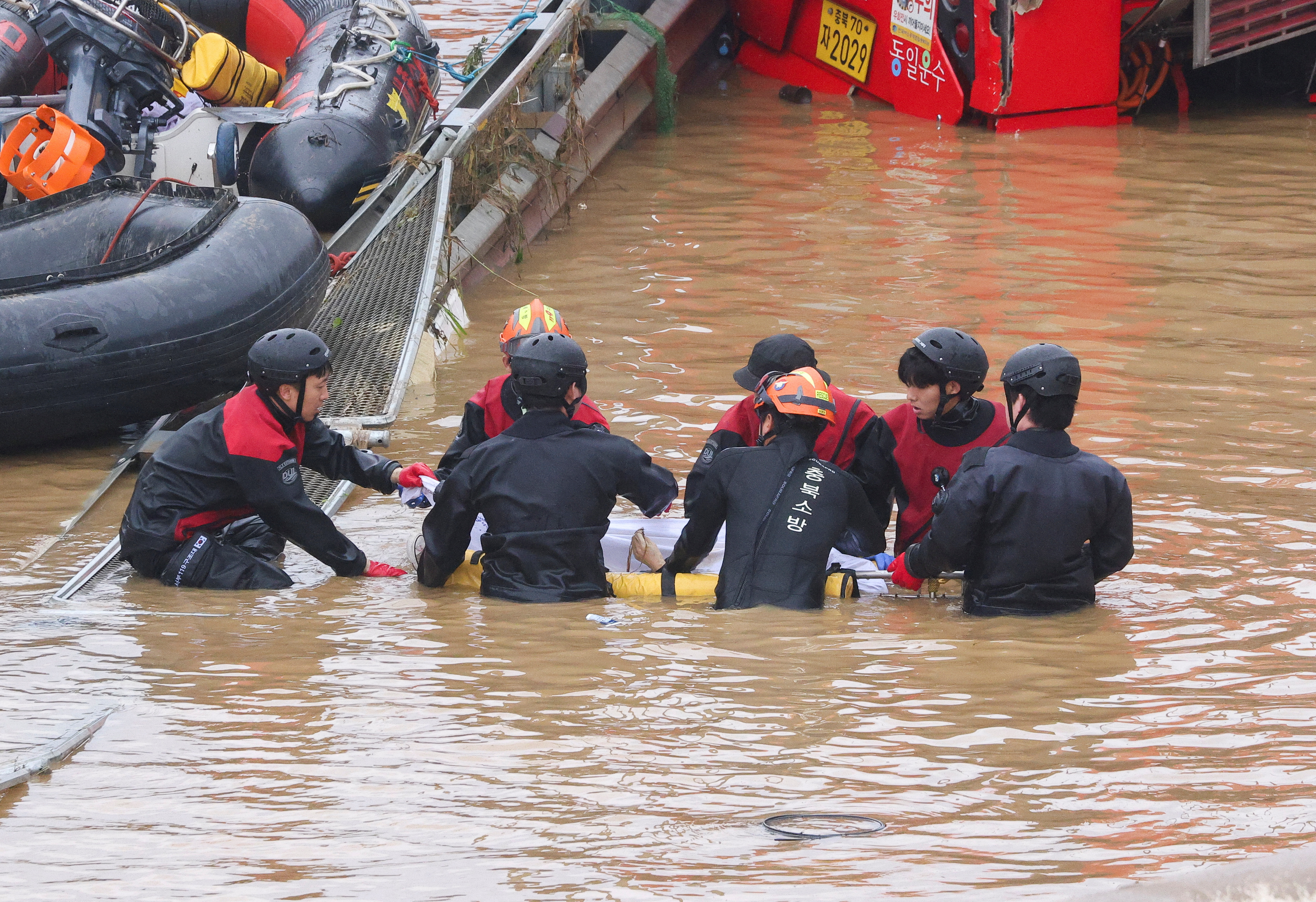 清州西部消防站站长徐正一表示,据估计,包括一辆公交车在内的大约15辆车辆在河堤在周六被暴雨摧毁后不久被淹没在该市的地下通道中。