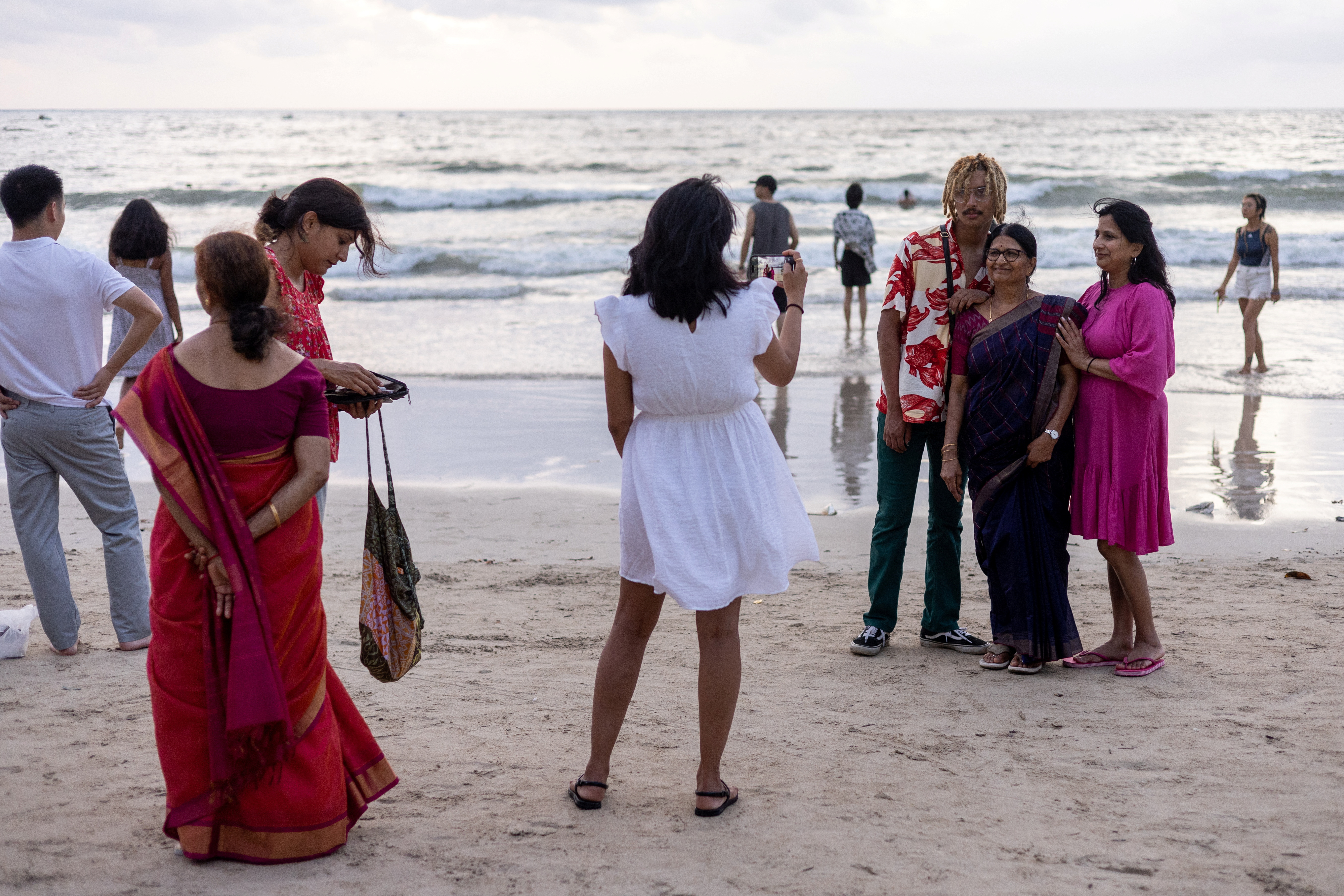 来自印度的Shivkumar-Manjunatha家庭成员在泰国普吉岛的巴东海滩度过了他们的第一次家庭度假,并拍摄了照片,2023年7月14日。路透社/Jorge Silva