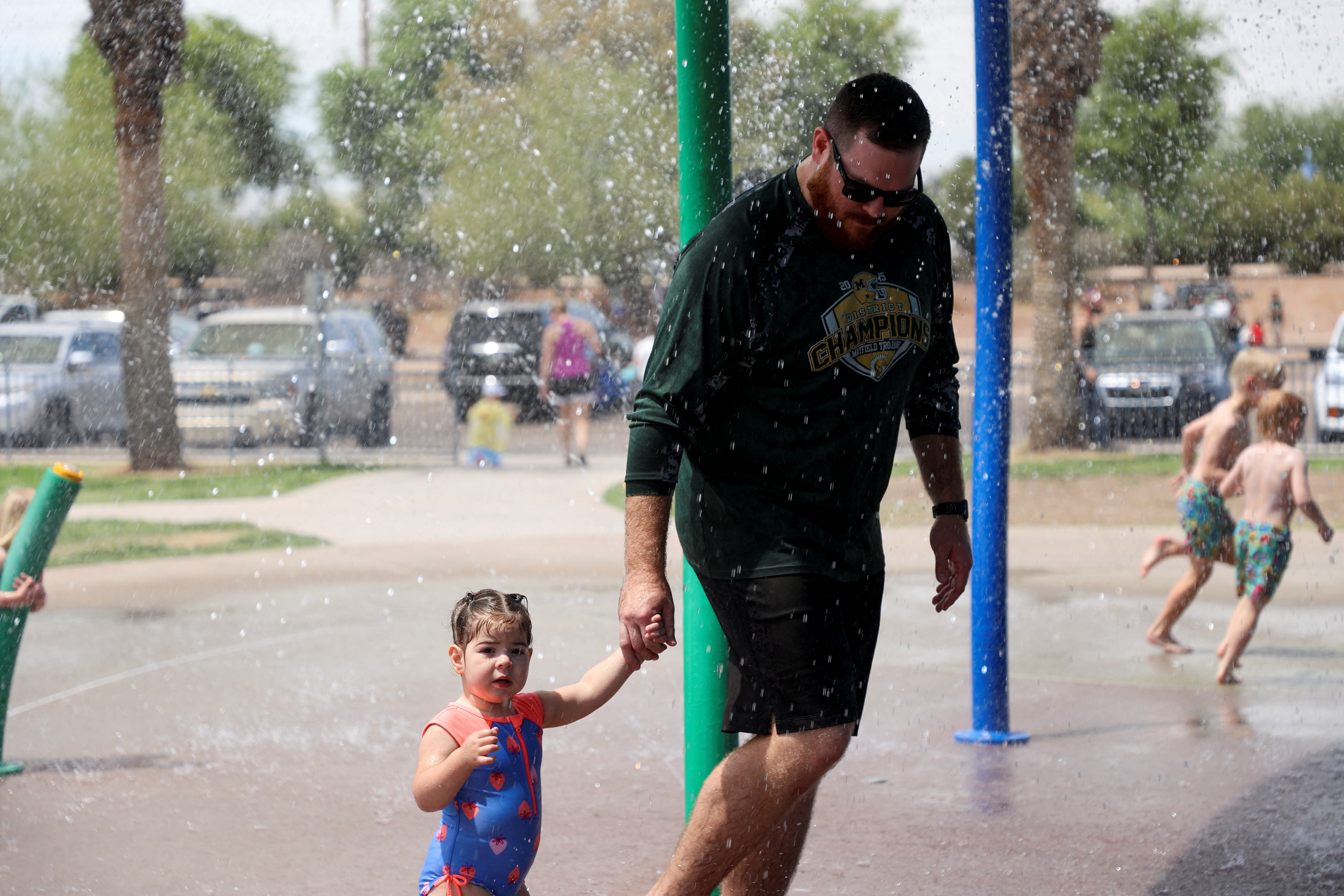 “凤凰城之外的人看到113或114度会倒抽一口冷气,”沃尔兹说。“我们通常会在118或119度左右找掩护。但天气非常炎热,也很危险。”