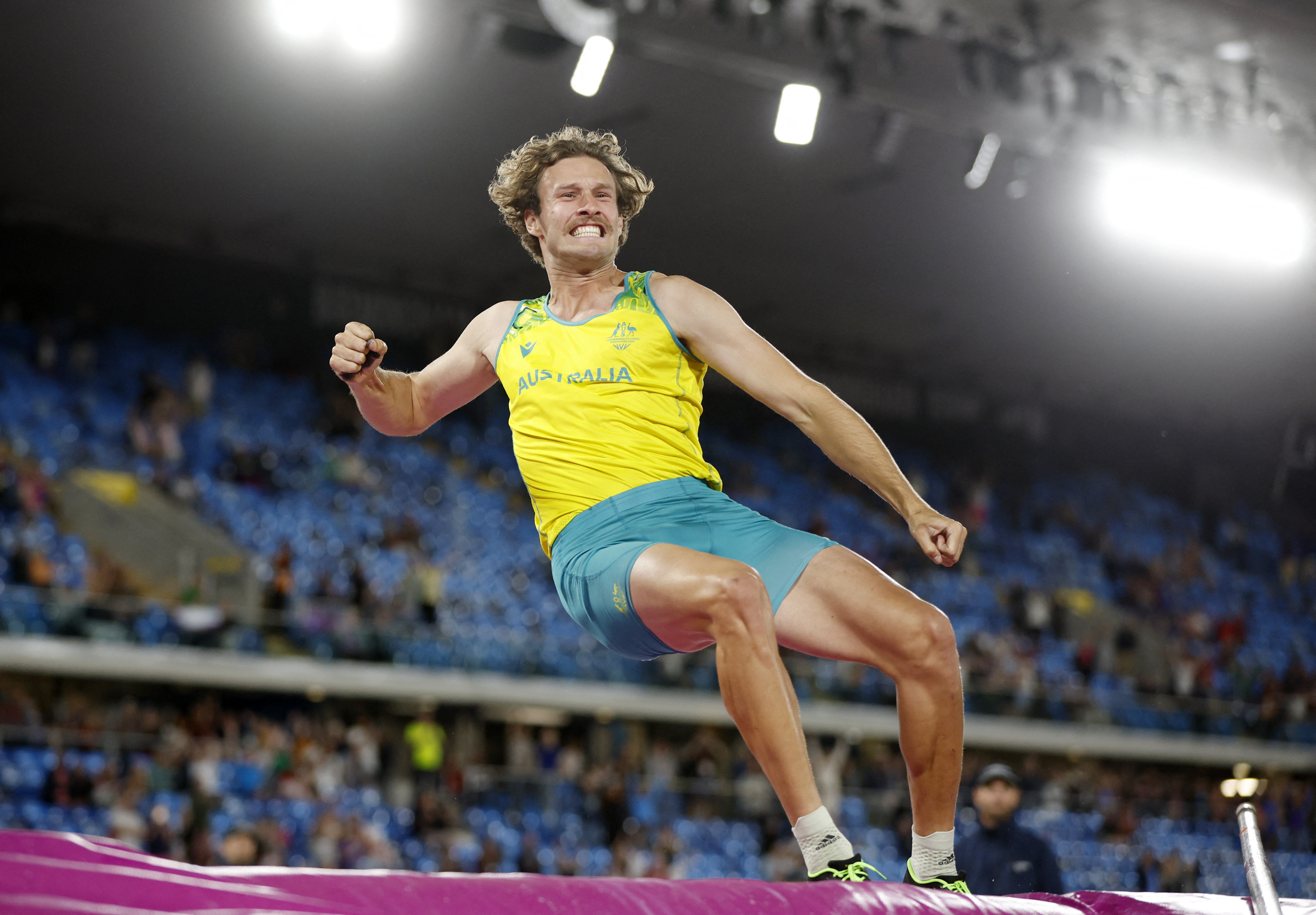 英联邦运动会 - 田径 - 男子撑杆跳 - 决赛 - 亚历山大体育场,英国伯明翰 - 2022年8月6日,澳大利亚选手库尔蒂斯·马沙尔在决赛中做出反应 路透社/约翰·西布利