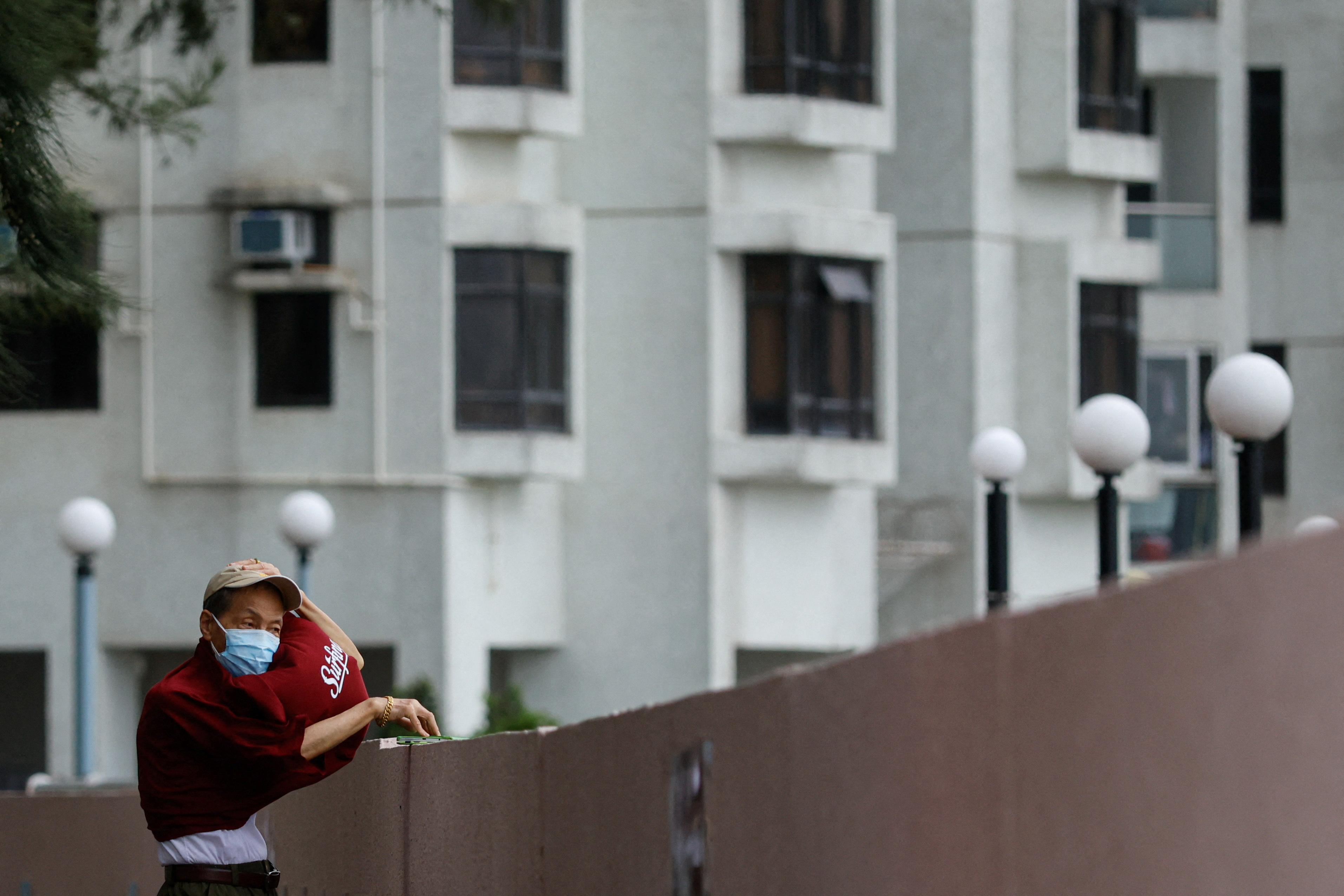 一名男子在台风塔林来临时在香港的海边观看海浪,中国,2023年7月17日。路透社/ Tyrone Siu