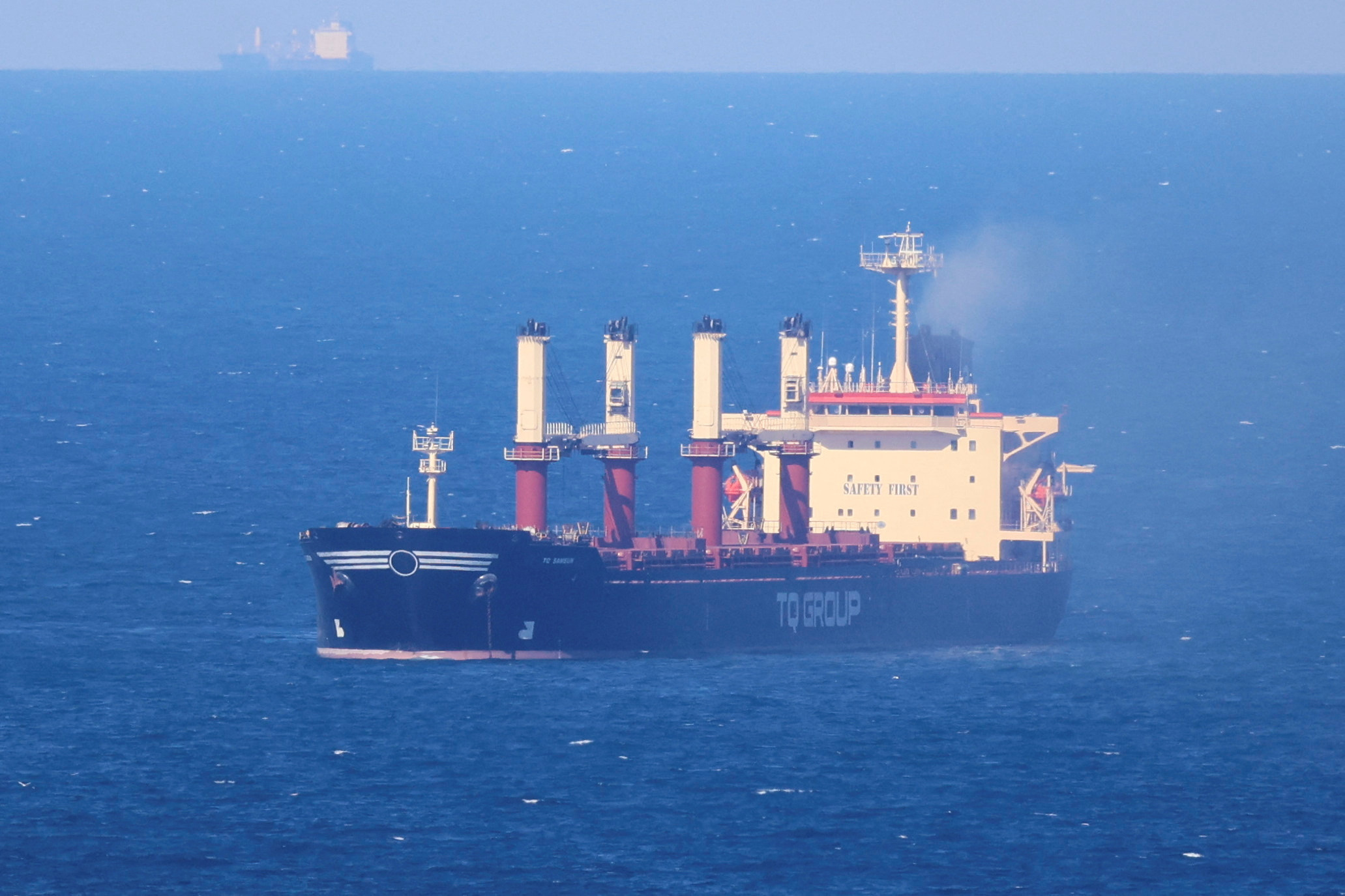 载有联合国黑海粮食倡议粮食的土耳其旗船TQ Samsun,2023年7月17日在土耳其伊斯坦布尔以北的博斯普鲁斯海峡以北的黑海上拍摄。REUTERS/Yoruk Isik
