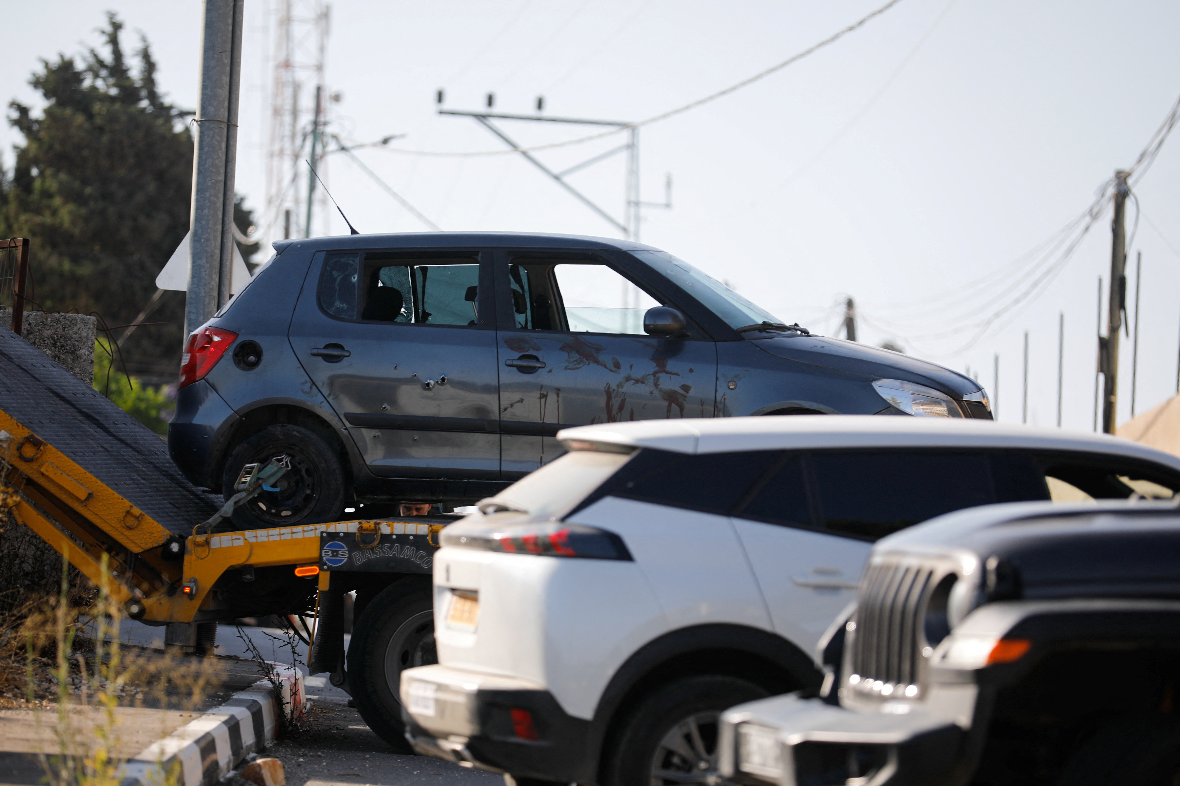 根据以色列军方声明和陆军广播电台的消息,三名向以色列部队开火的巴勒斯坦人在约旦河西岸被以色列军队击毙,这是纳布卢斯的一辆汽车的全貌,2023年7月25日。路透社/拉宁·萨瓦夫塔(Raneen Sawafta)摄