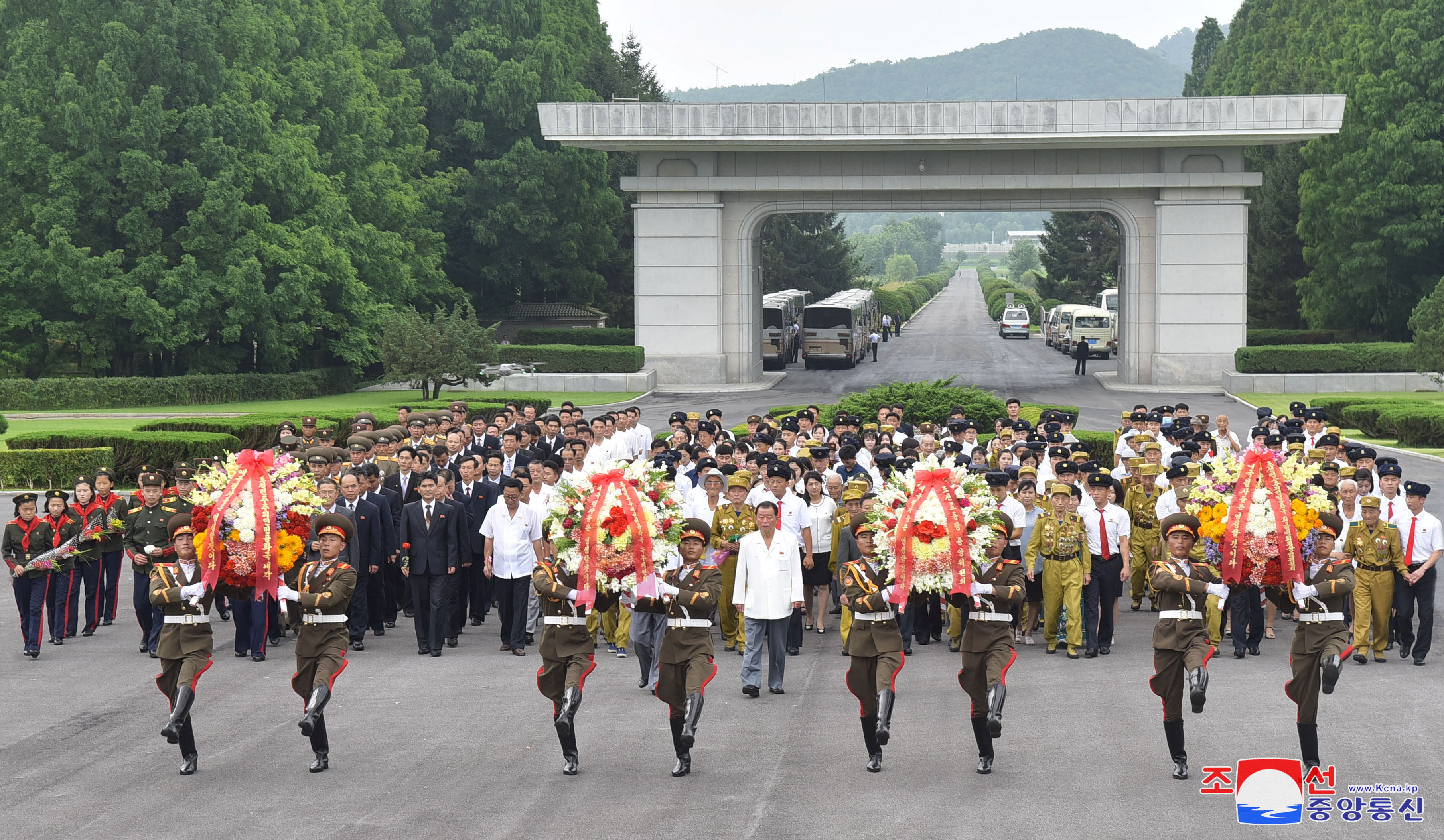 KCNA报道称,金正恩周一还参观了祖国解放战争烈士陵园,称赞士兵们“给美帝国主义以打击”。
