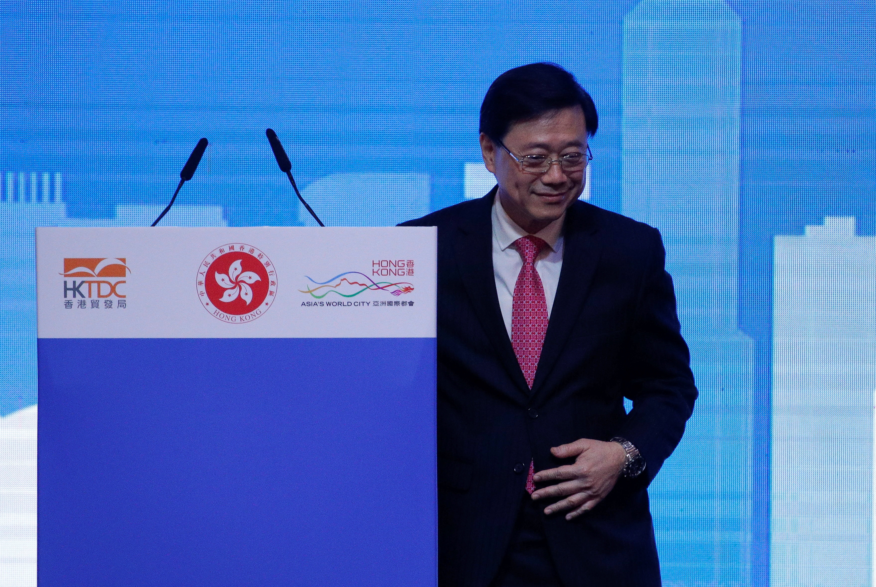 香港特首李家超在马来西亚吉隆坡出席马来西亚-香港商务午宴并发表讲话后离开讲台,照片拍摄于2023年7月28日。REUTERS/Hasnoor Hussain