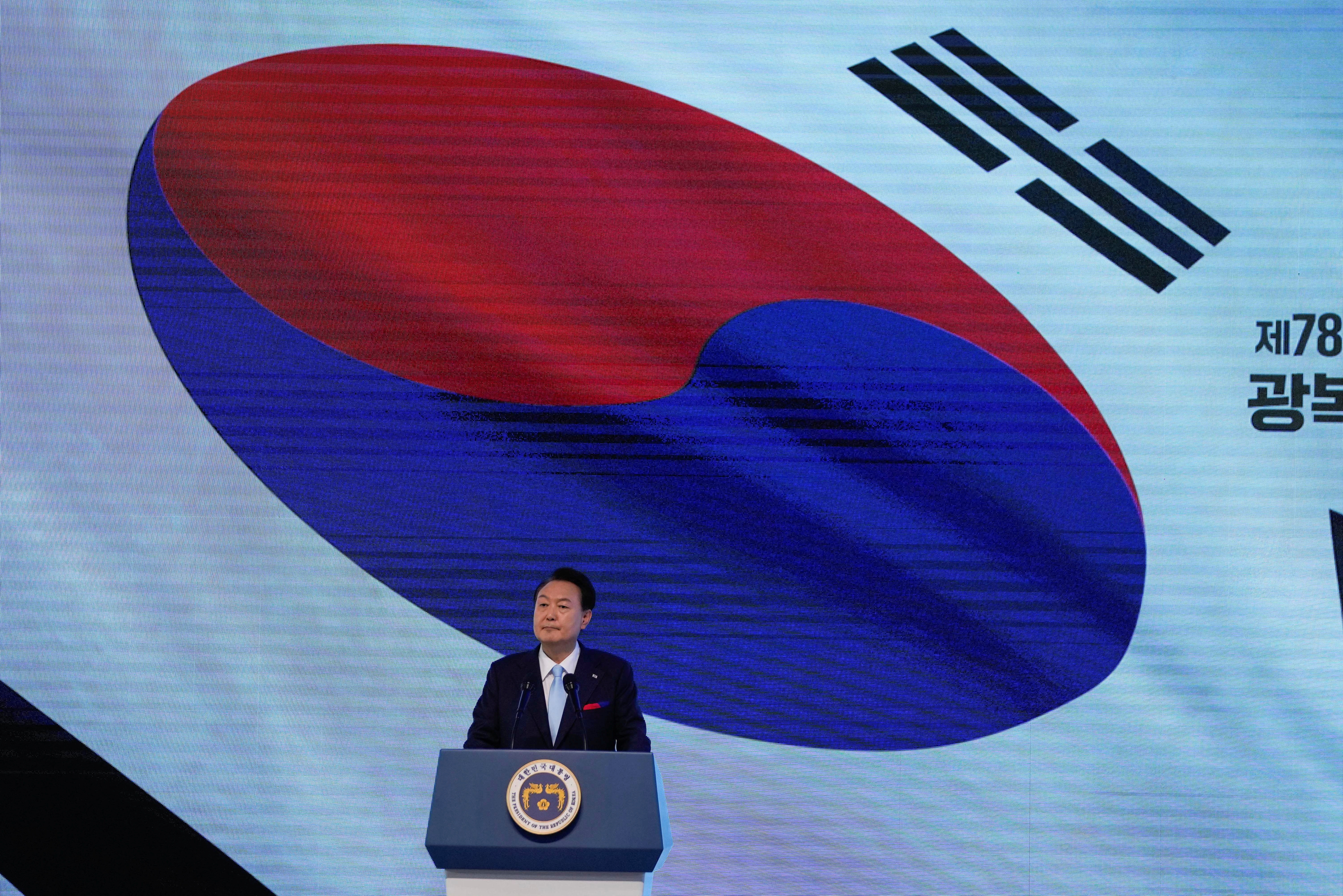 在庆祝国家从1910年至1945年日本殖民统治中解放的周年纪念讲话中,尹锡悦强调了与华盛顿和东京加强安全合作的必要性,通过侦察资产和朝鲜核武器和导弹的实时数据共享。