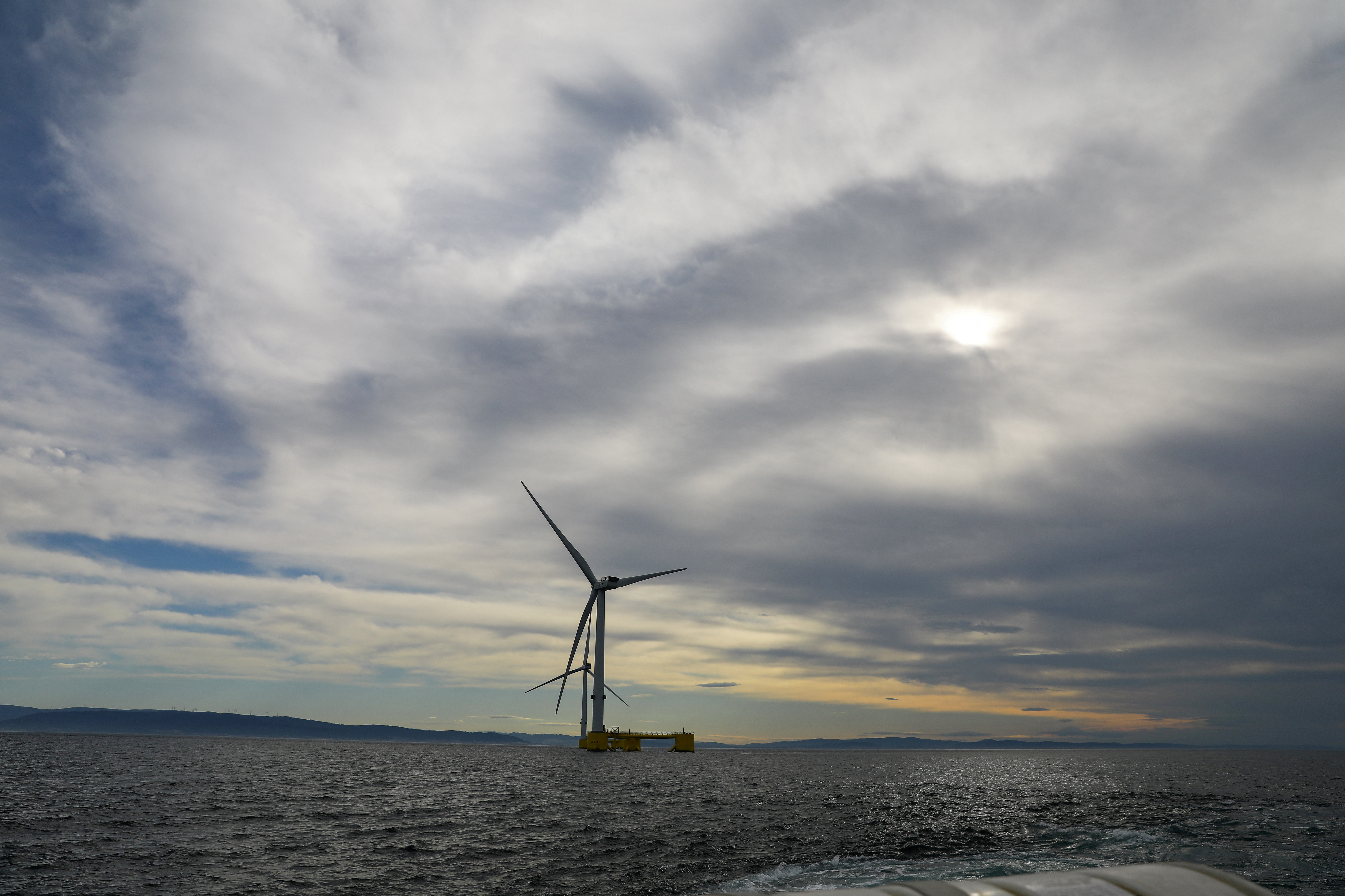 风浮大西洋项目的涡轮机,一种浮动式海上风力发电平台,于2021年9月23日在葡萄牙维亚纳杜卡斯特洛海岸外20公里处可见。图片拍摄于2021年9月23日。路透社/Violeta Santos Moura/文件照片