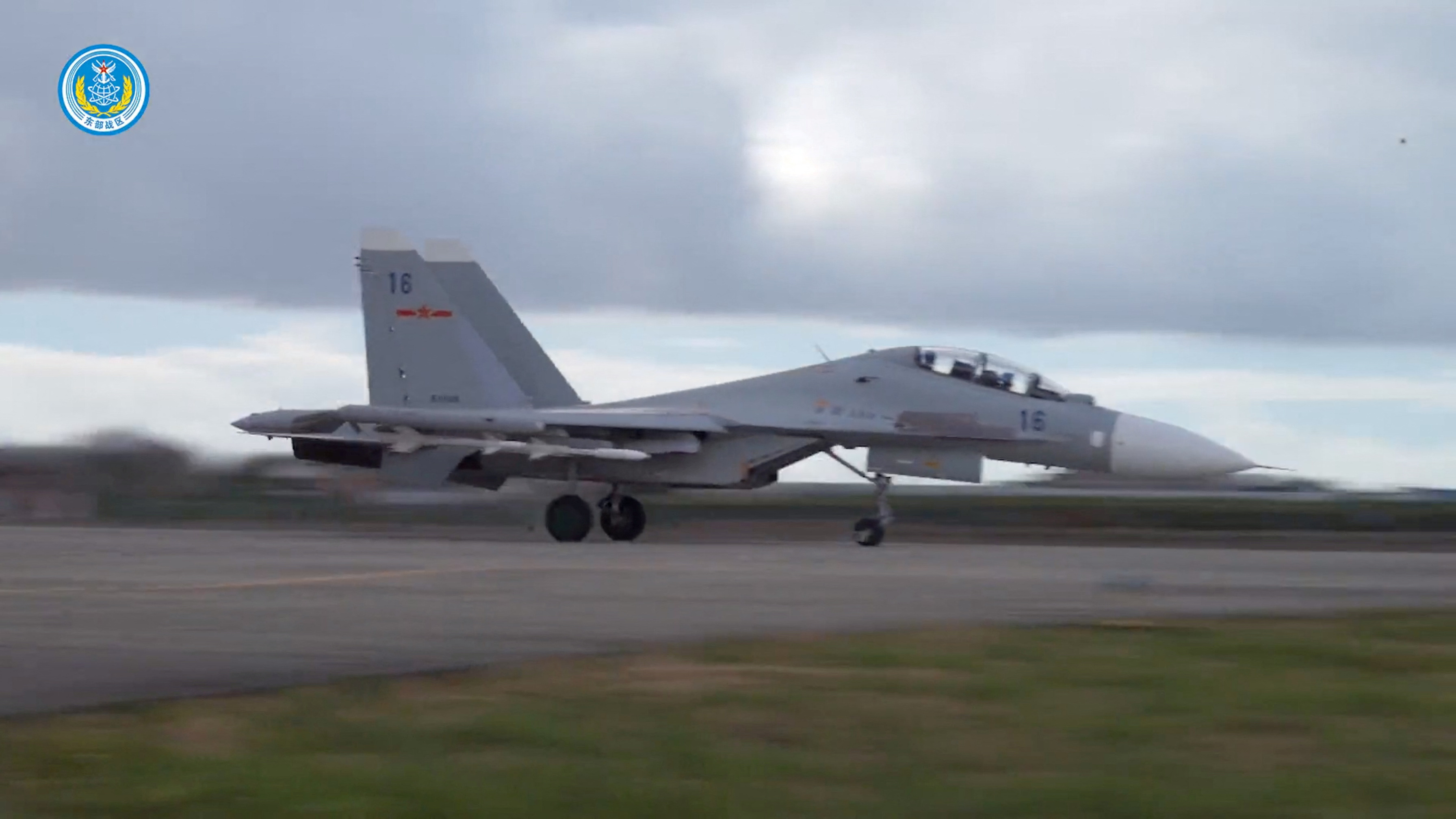 该指挥发布了据称是周六拍摄的视频画面,显示J-16和J-10战斗机以及一艘海军驱逐舰正在巡逻。