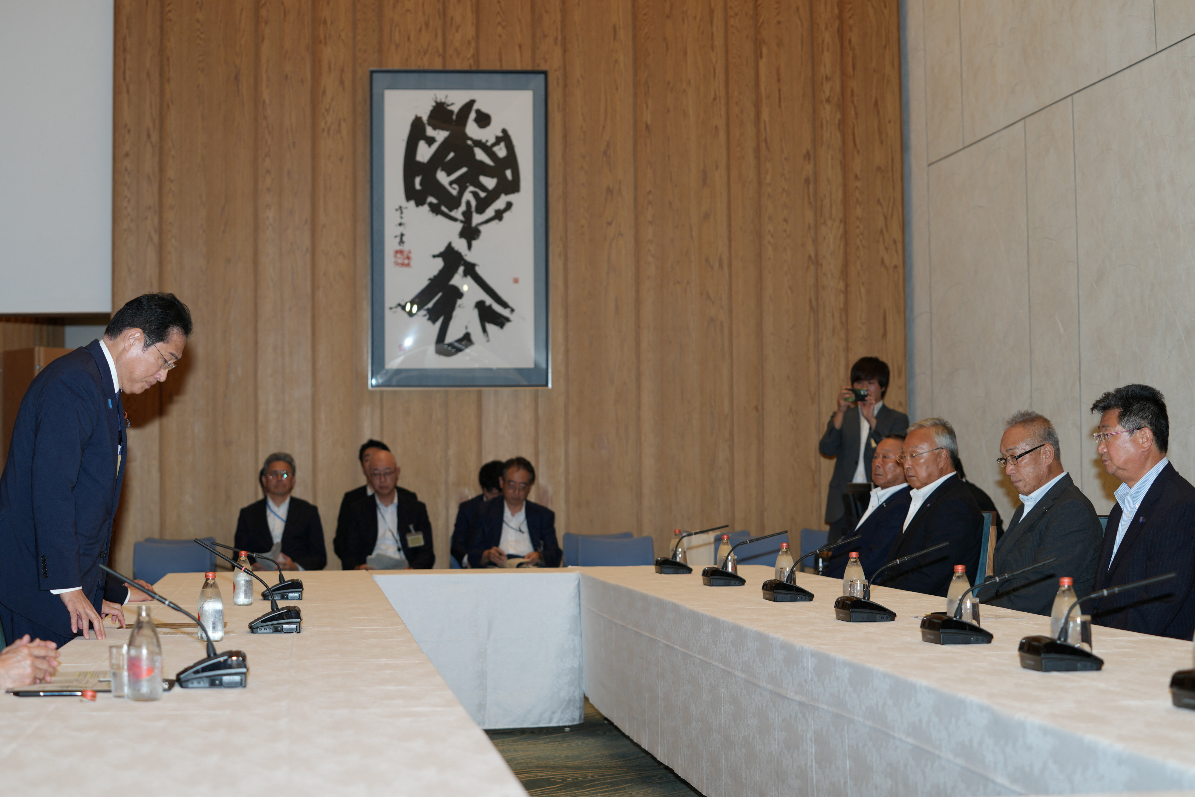 坂本正信,日本渔业合作协会主席,在2023年8月21日与日本首相岸田文雄在东京首相官邸举行会议时发言。张晓宇/路透社/摄