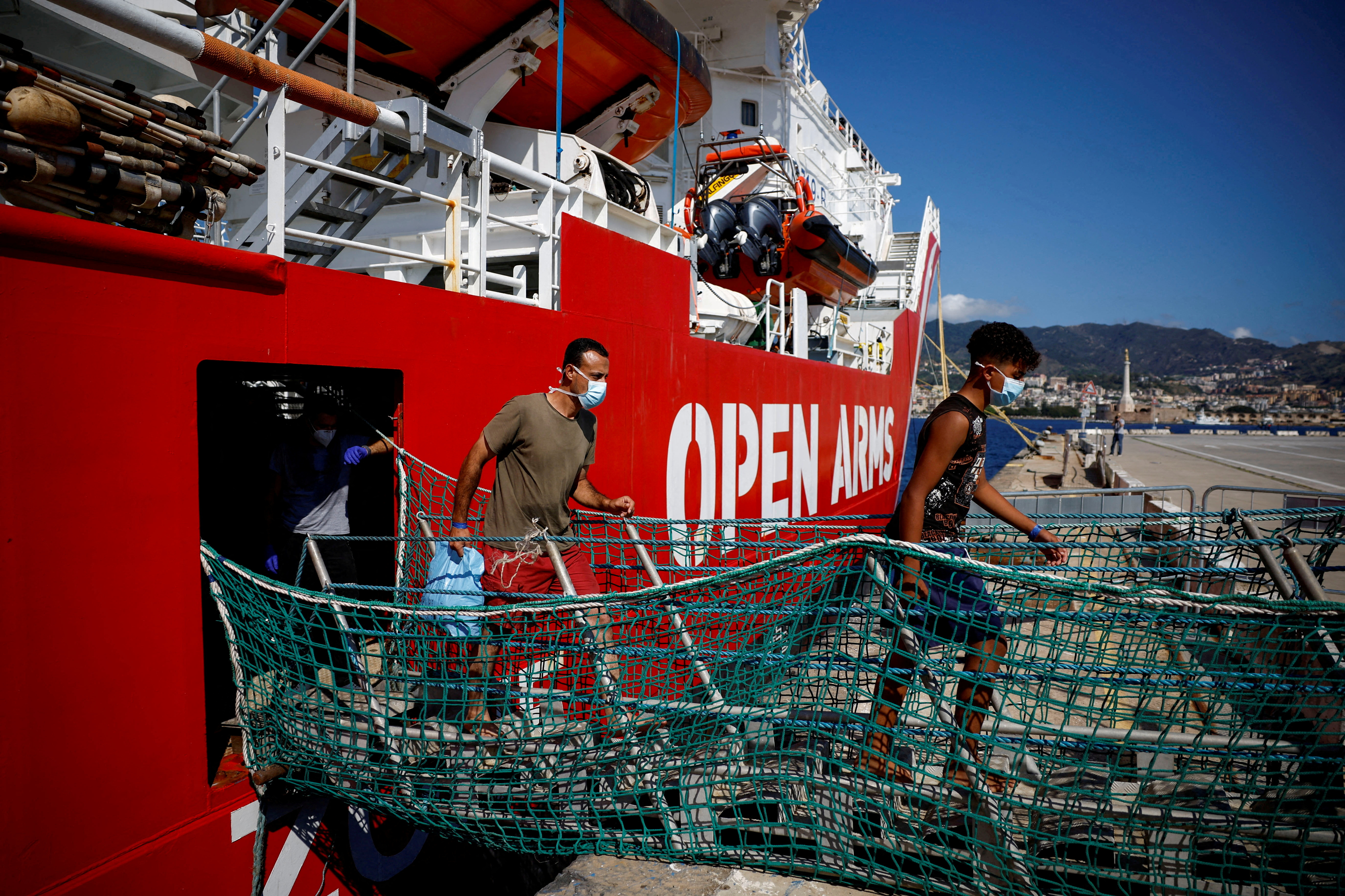移民从“开放武器”救援船上下船,抵达西西里岛墨西拿港,意大利,2022年8月27日。路透社/Juan Medina/档案照片