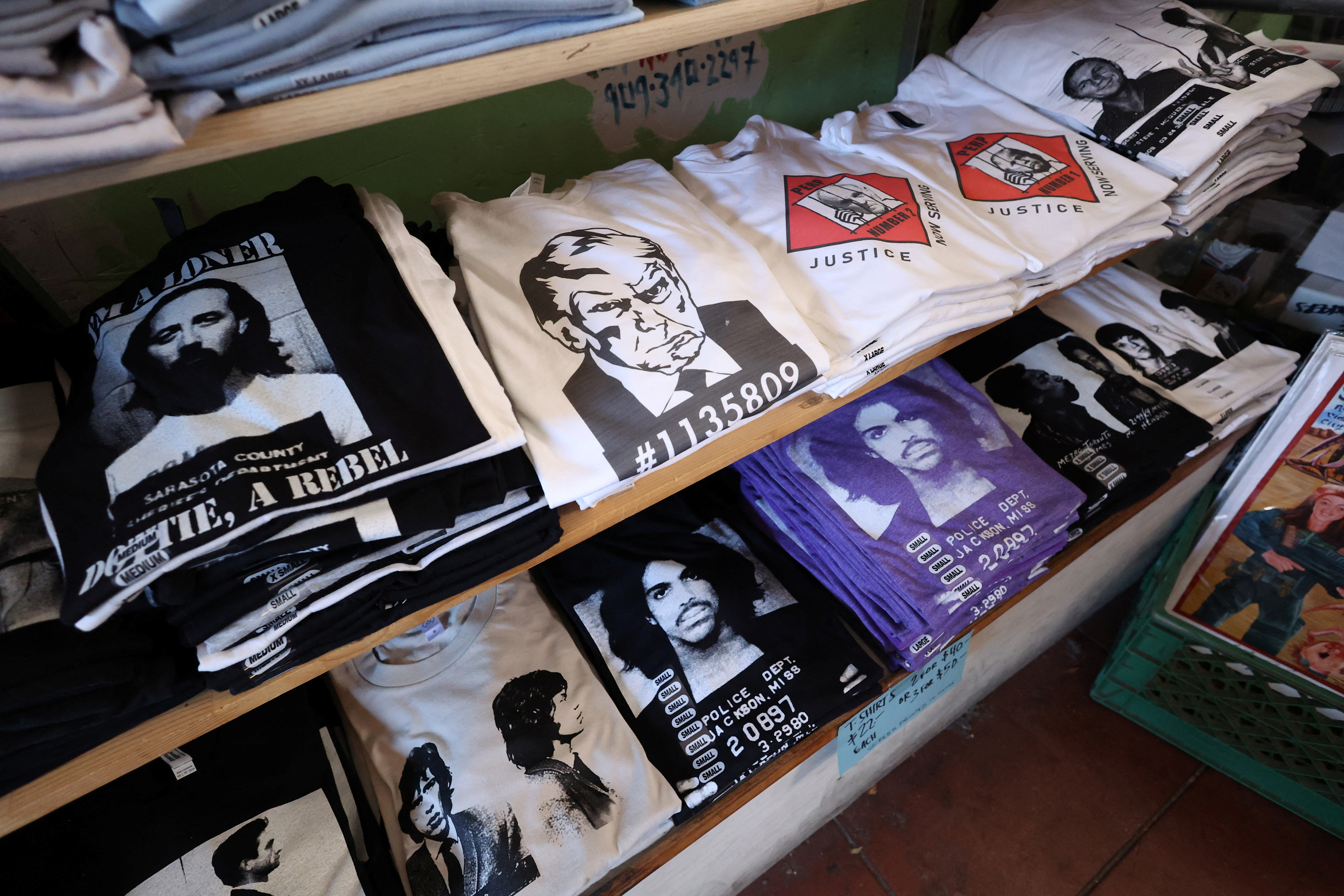 美国分裂,拥抱特朗普的逮捕照商品 | 路透社