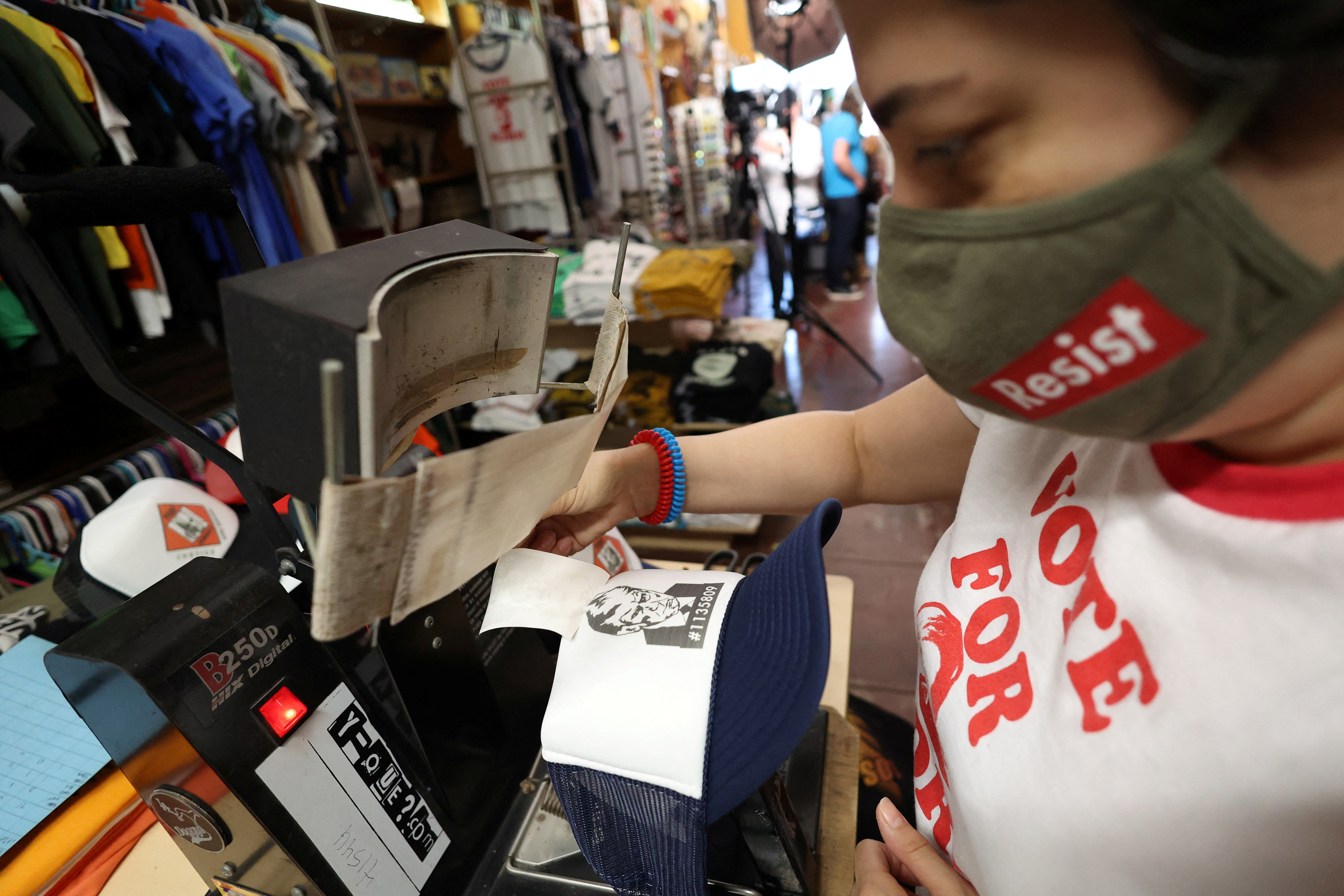 美国分裂,拥抱特朗普的逮捕照商品 | 路透社