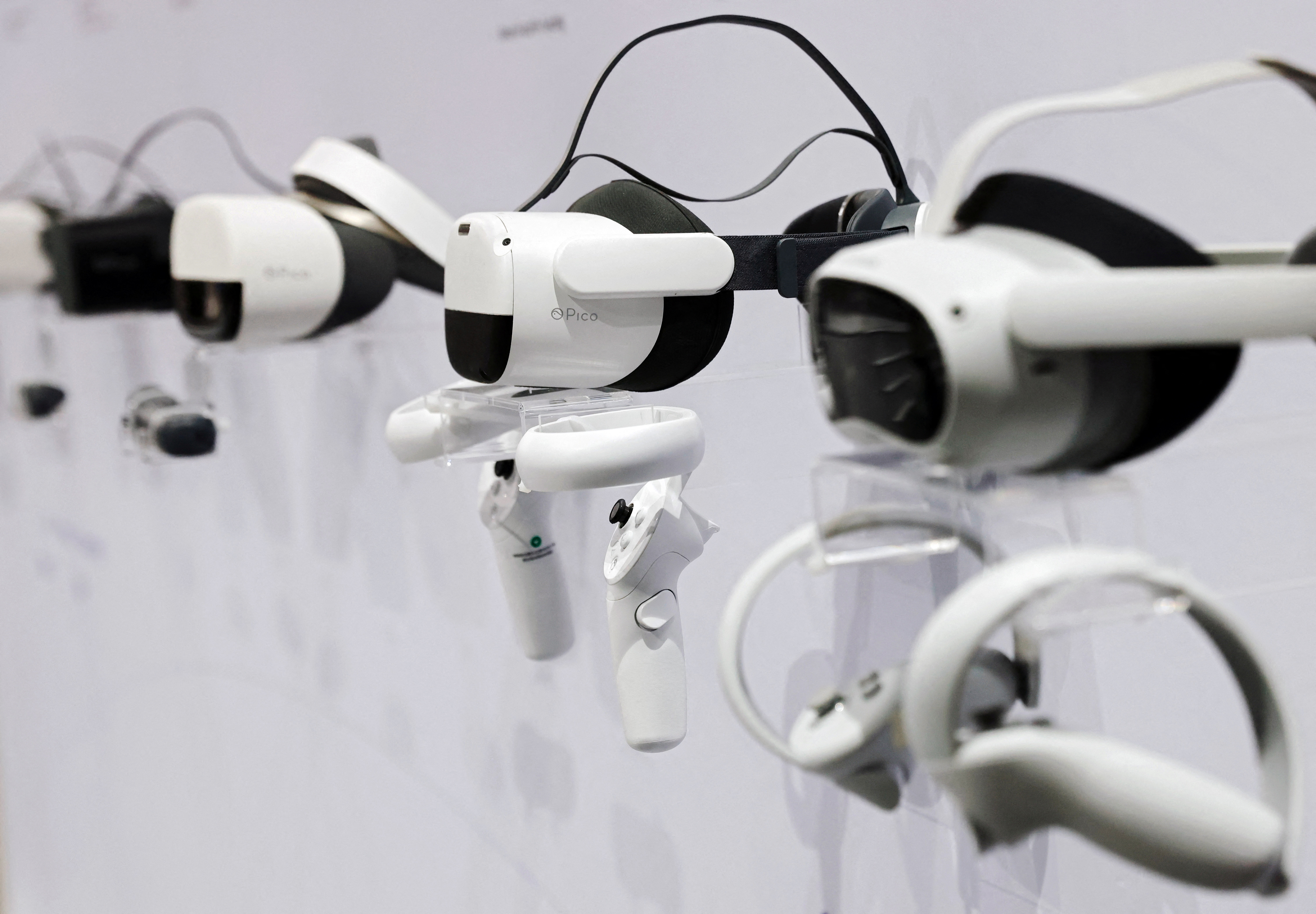 来自Pico的虚拟现实设备在2023年6月23日新加坡举行的奥林匹克电子竞技周的场外展出。路透社/埃德加·苏摄