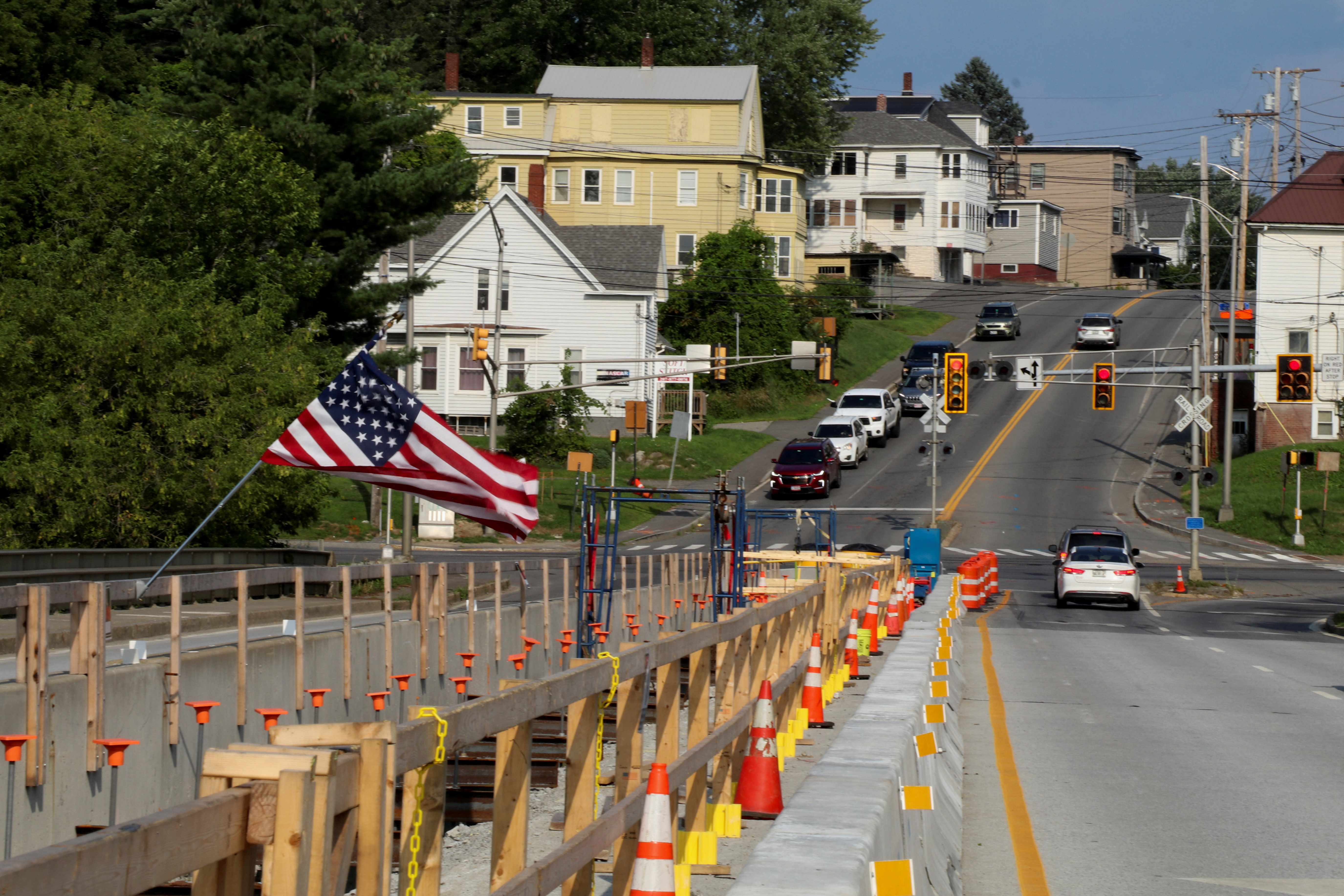 2023年8月5日,美国缅因州沃特维尔的百年老提科尼克桥正在进行部分由总统乔·拜登的1万亿美元两党基础设施法案资助的施工工作。这项工程始于2023年3月,计划于2027年5月完成。路透社/安德里亚·沙拉尔 摄