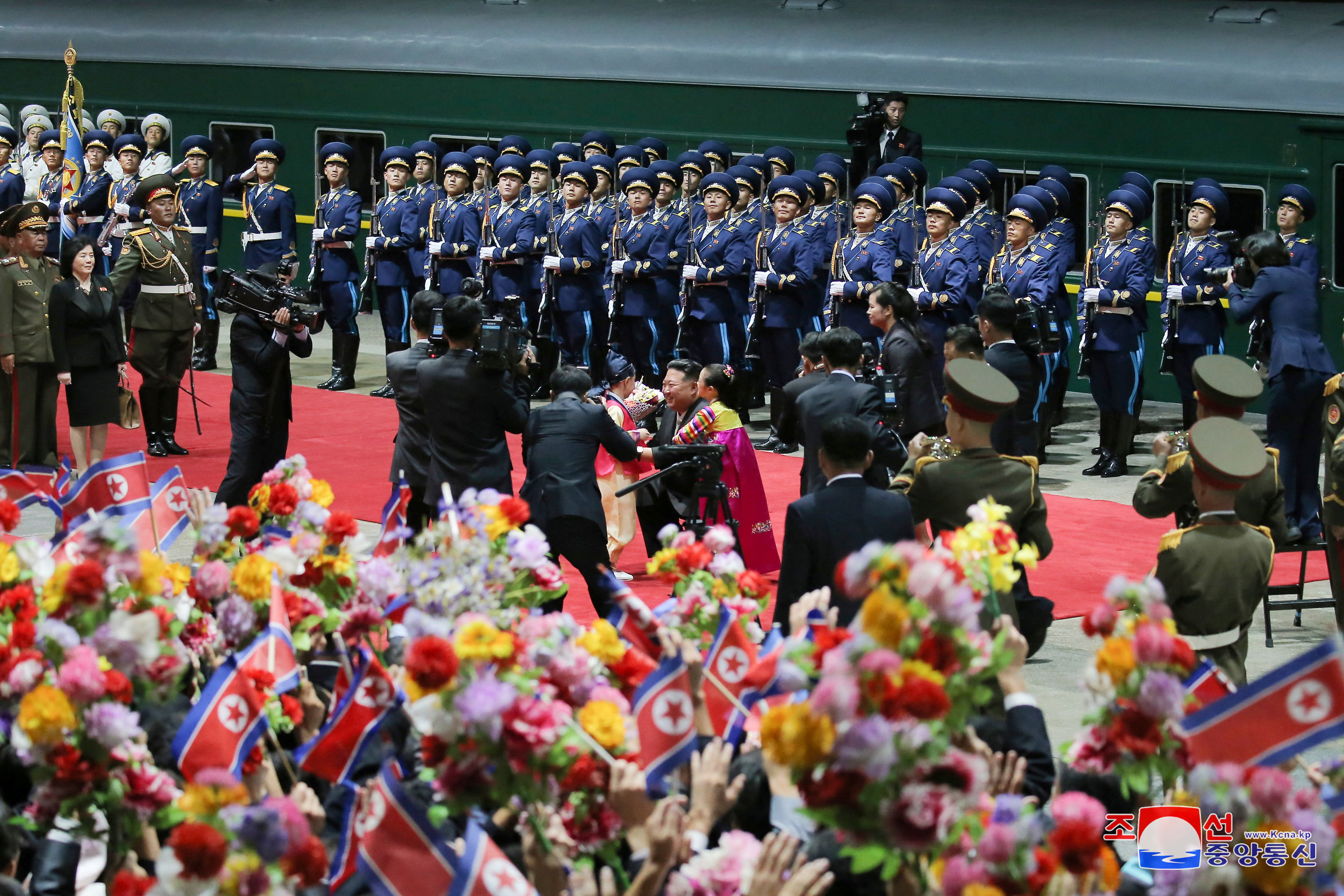 报道称,金正恩在火车站受到高级官员和仪仗队的欢迎,描述他的行程是加强朝鲜-俄罗斯关系的重要一步。