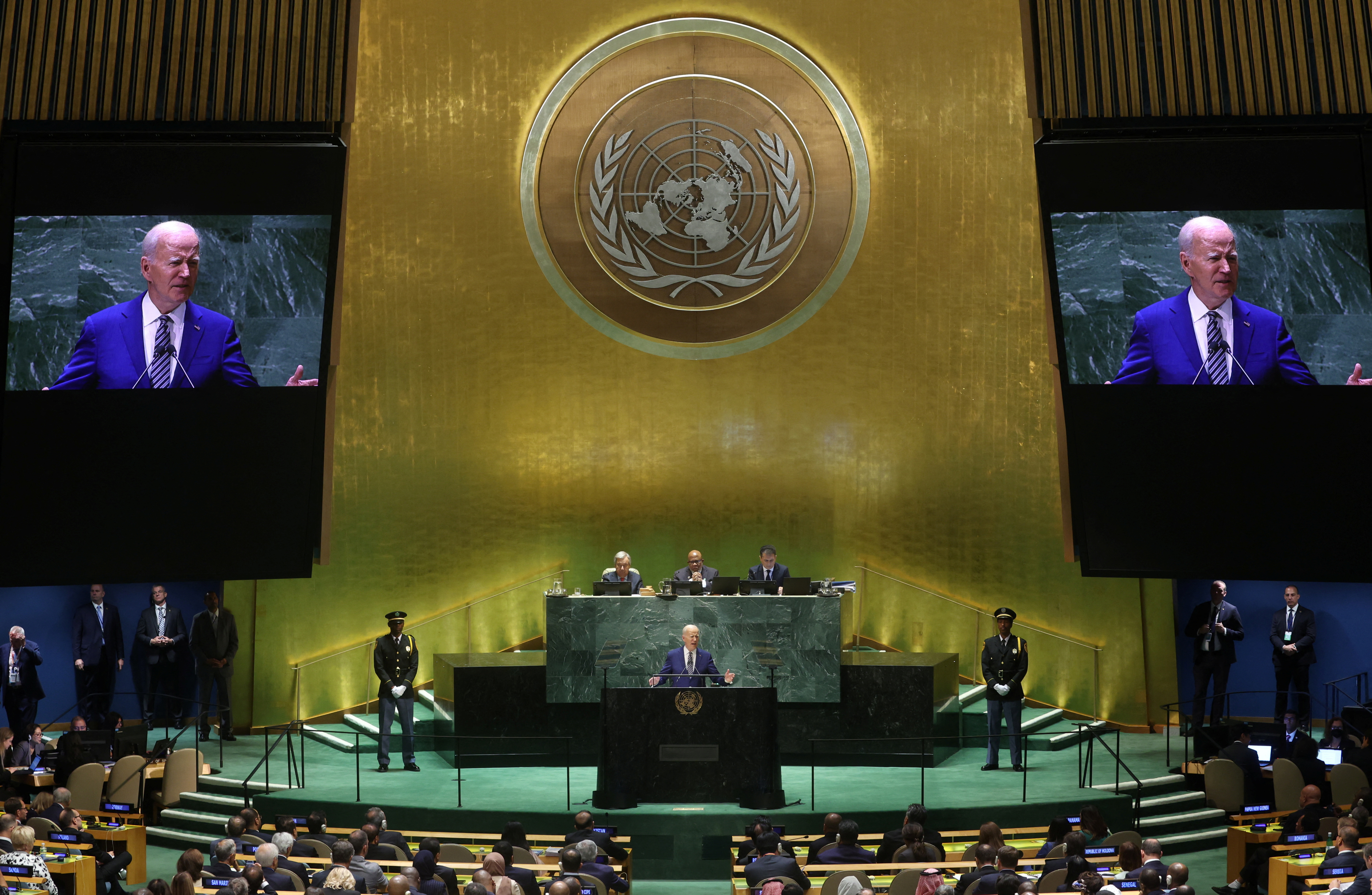 拜登在他向联合国大会发表讲话时说:“俄罗斯相信世界会厌倦并允许它无惩罚地残害乌克兰。”“如果我们允许乌克兰被分割,任何国家的独立都安全吗?”