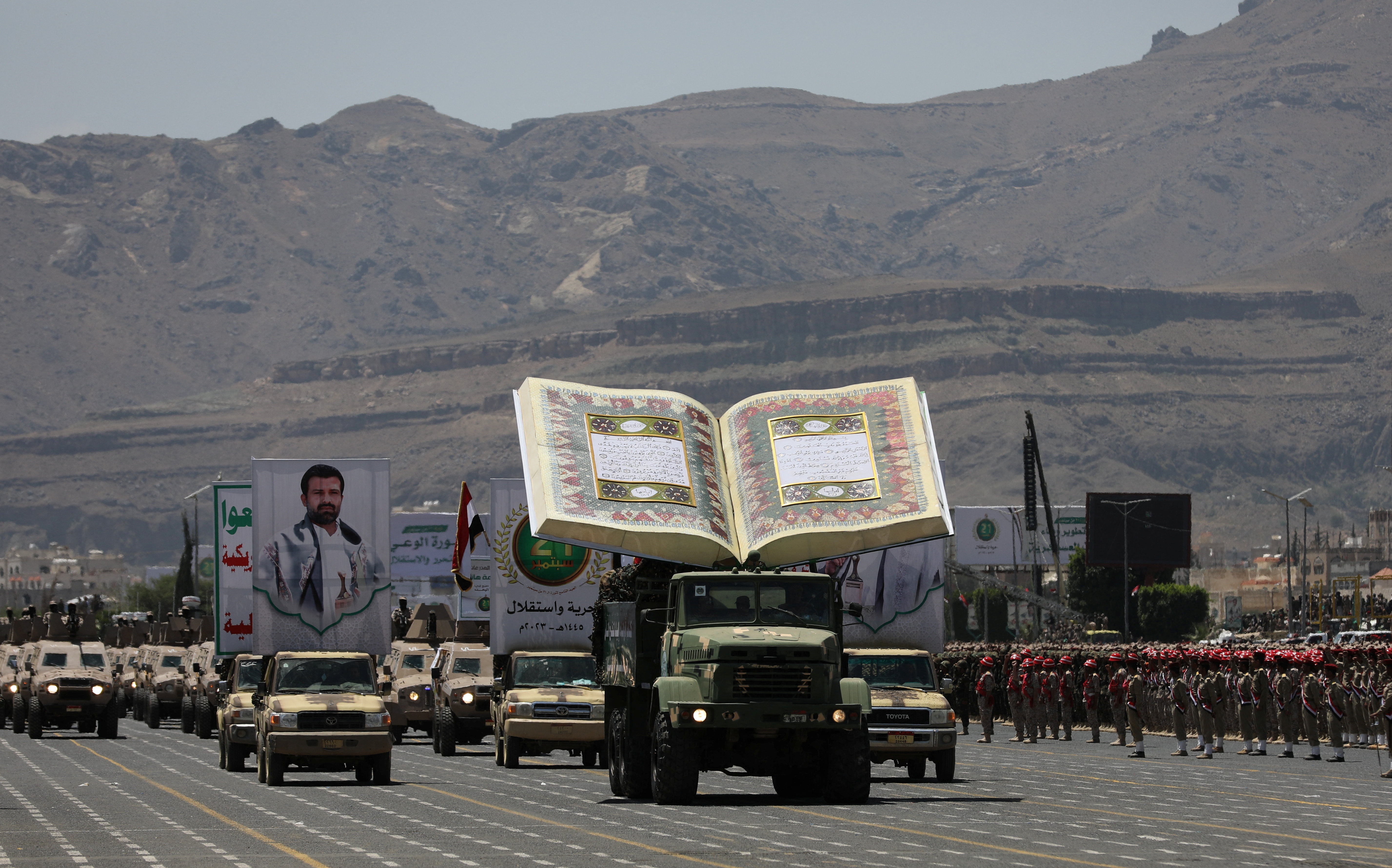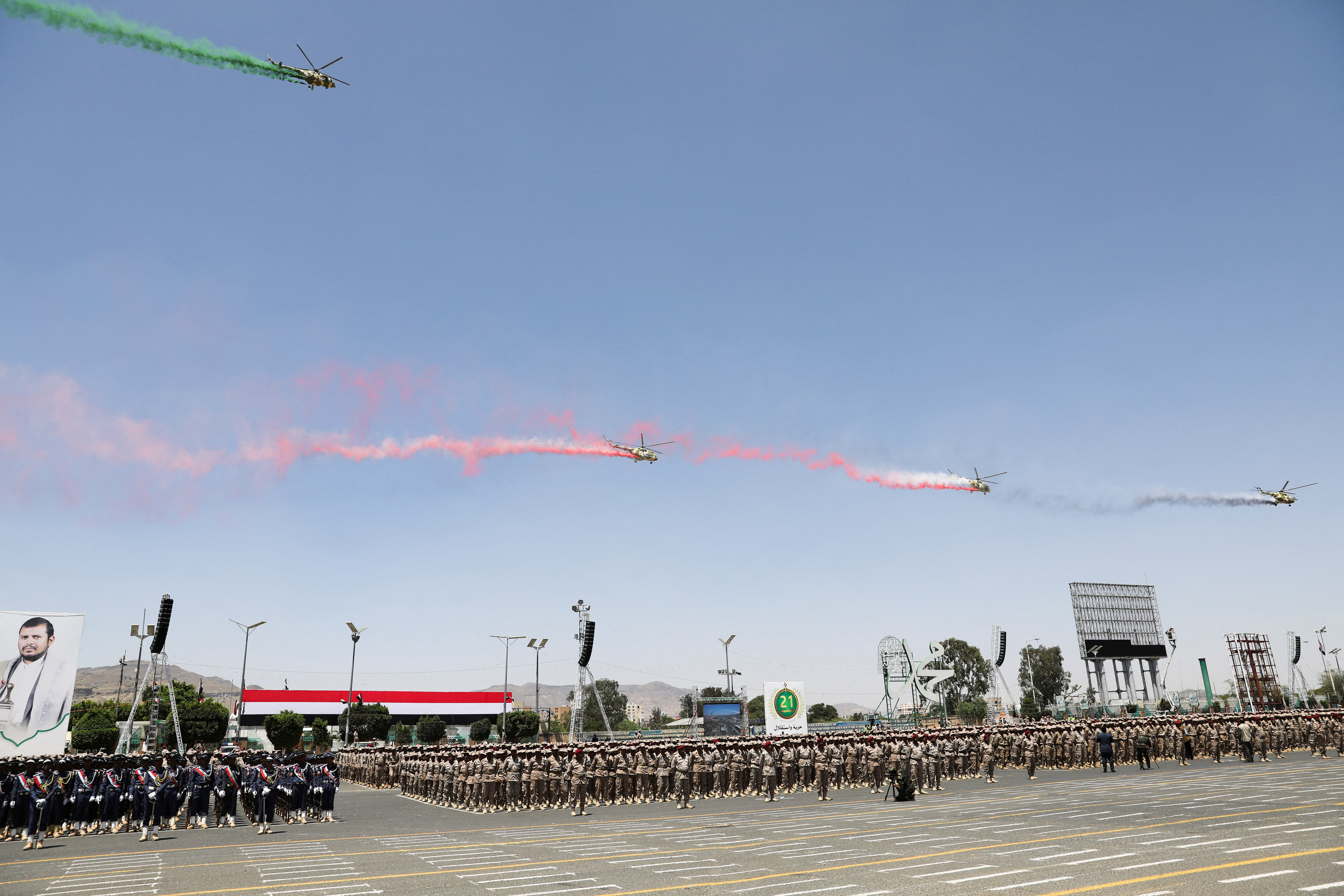 一场由胡塞武装举行的阅兵式在也门首都萨那举行,以纪念他们接管政权的周年纪念日,图片摄于2023年9月21日。 胡塞武装媒体办公室/路透社提供