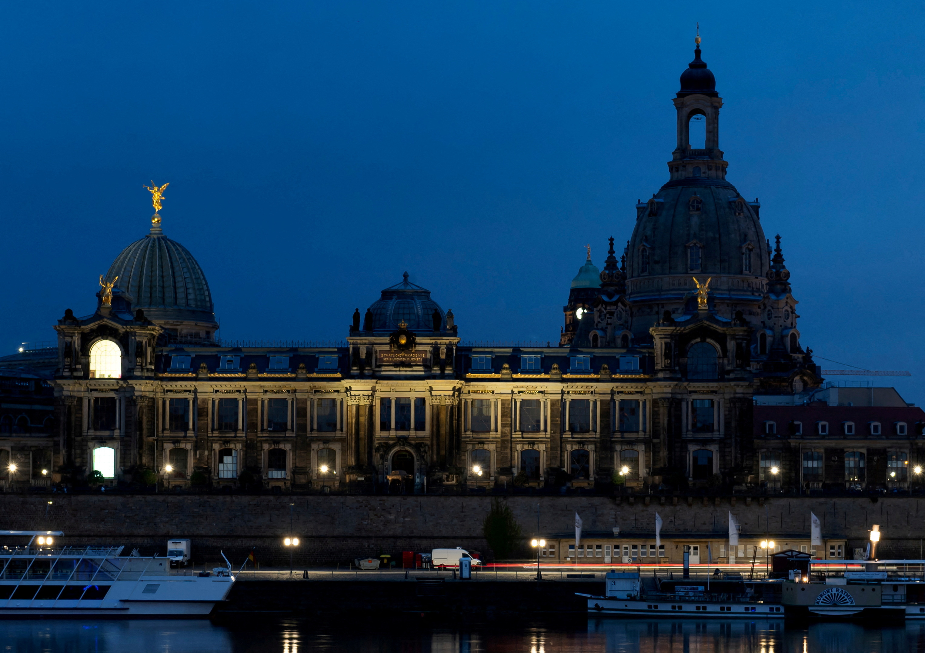 文件照片:2022年7月21日,德国奥格斯堡市未点亮的市政厅附近有人坐着。德国南部的奥格斯堡市承诺通过不在夜间照明旅游景点、不加热公共游泳池或过热公共建筑来节约能源。路透社/卢卡斯·巴斯/文件照片