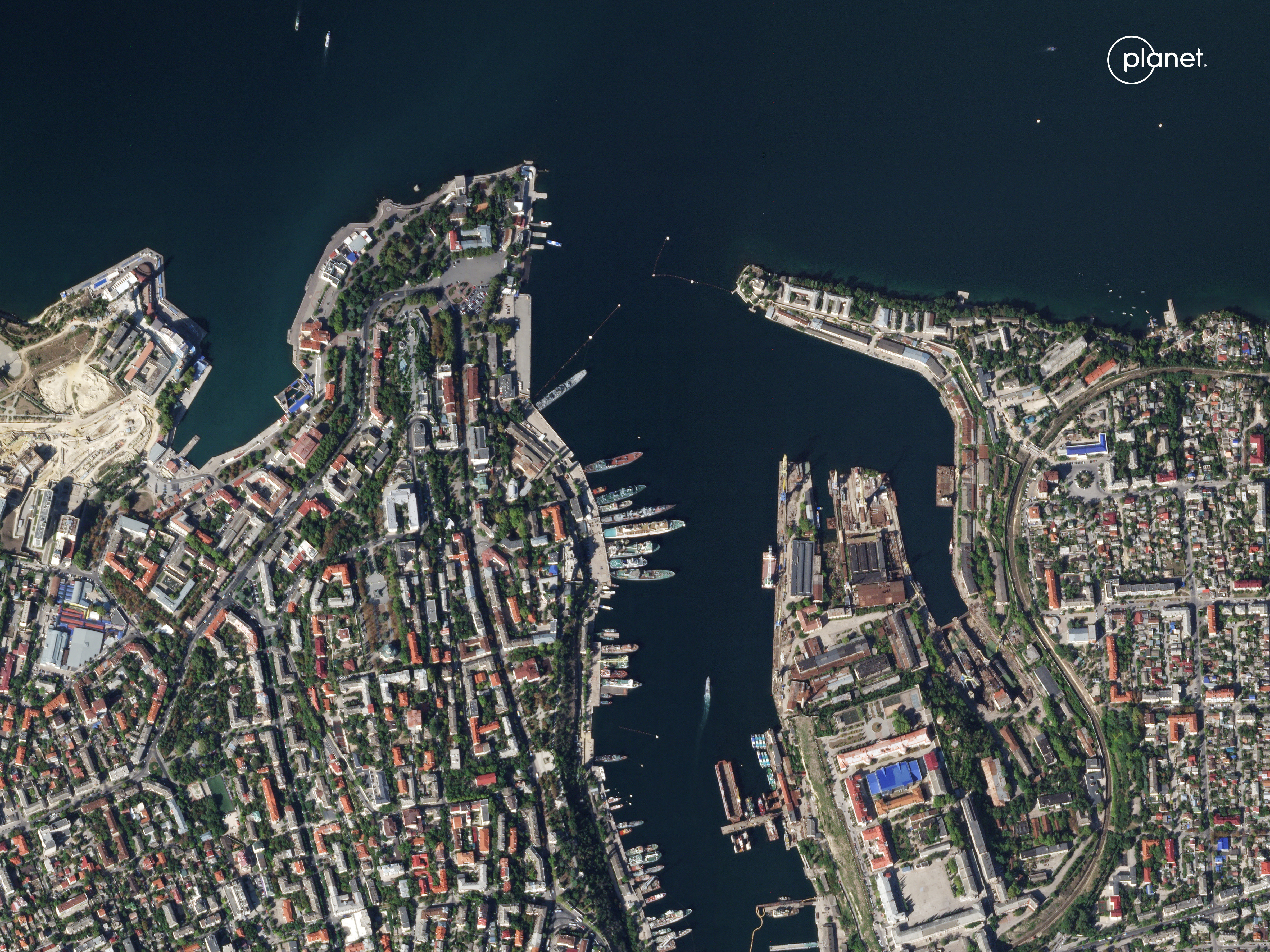 卫星图像显示俄罗斯黑海舰队总部在乌克兰导弹袭击后冒出的浓烟,随着俄罗斯对乌克兰的入侵继续,2023年9月22日在克里米亚塞瓦斯托波尔。 PLANET LABS PBC/路透社提供的照片