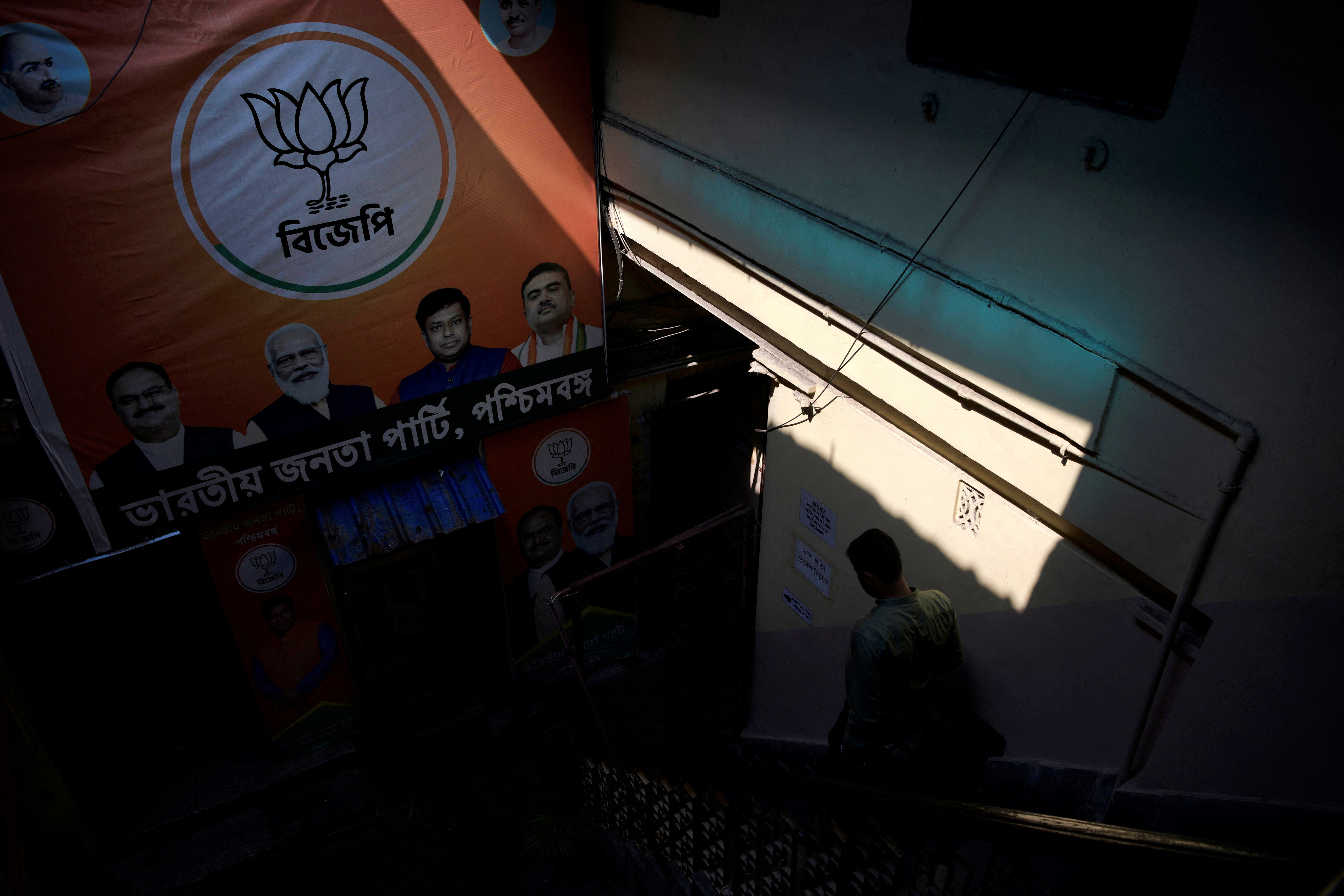 文件照片-印度执政党人民党(BJP)的工作者帕塔·乔杜里(Partha Chaudhury),39岁,2023年5月30日在印度加尔各答市参加该党的外展活动时接受路透社采访。REUTERS/Avijit Ghosh/文件照片