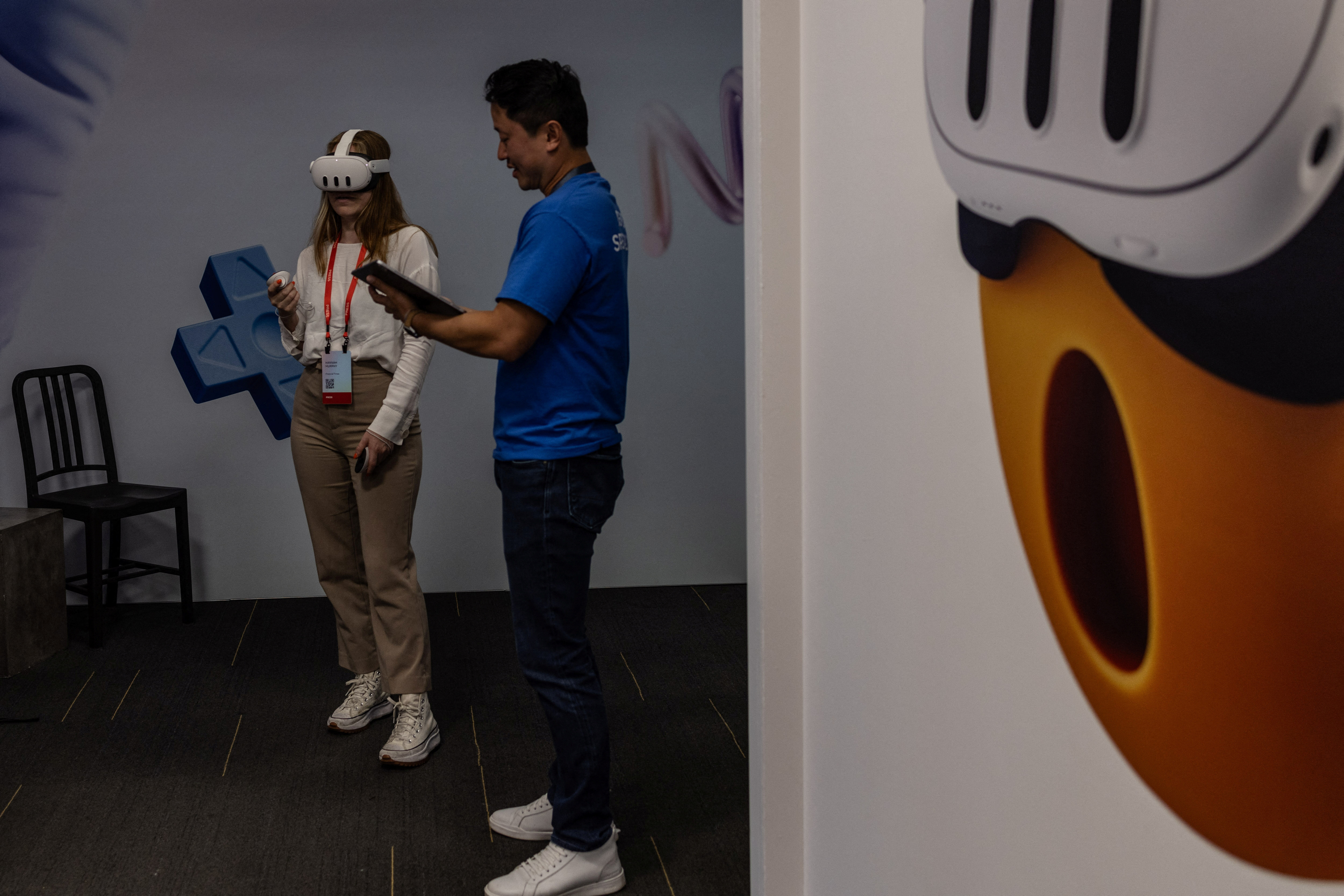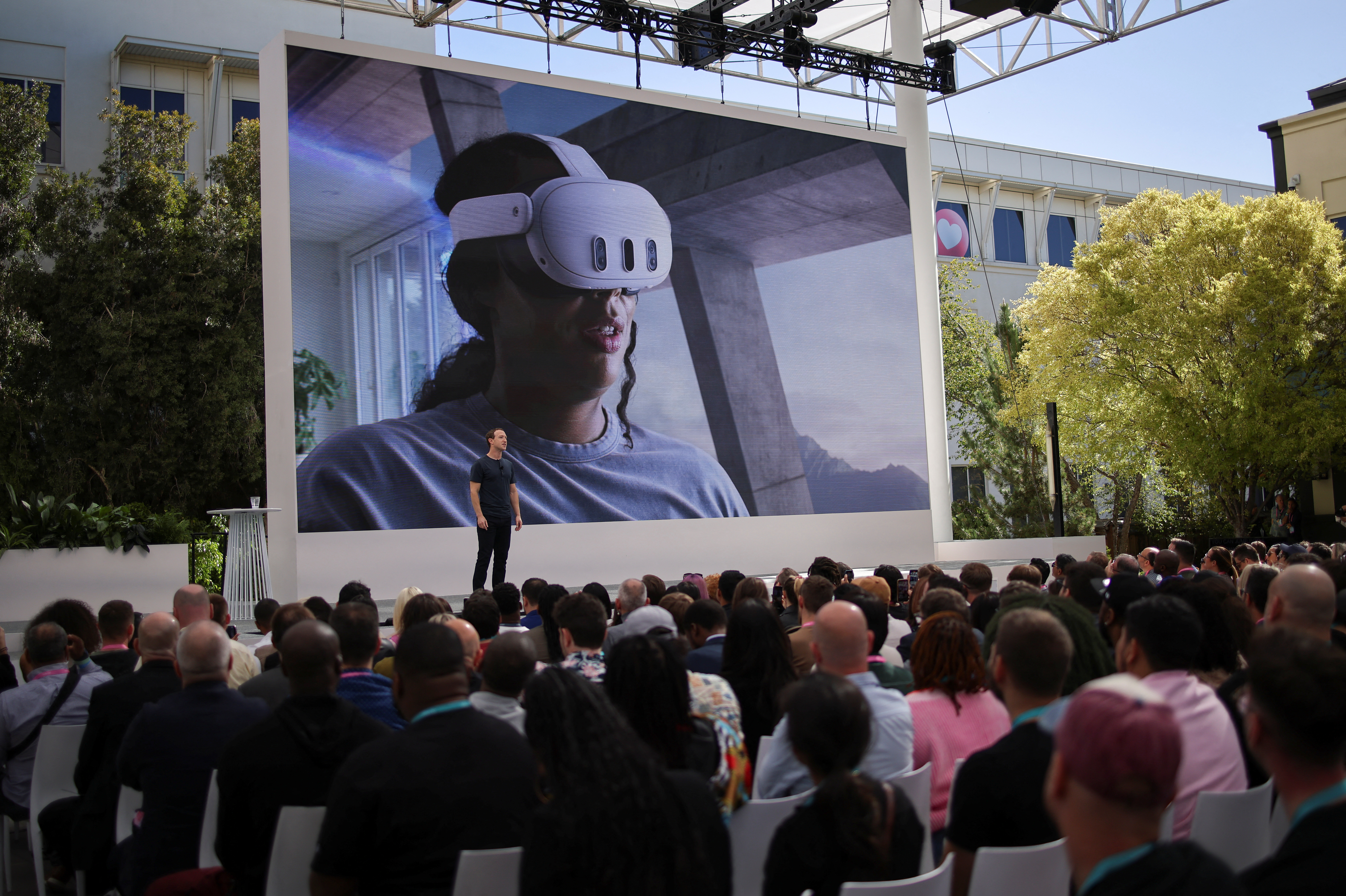 一位嘉宾参加了Meta Connect活动,在该公司位于美国加利福尼亚州门洛帕克的总部举行的虚拟现实头盔更新展示会,2023年9月27日。路透社/Carlos Barria