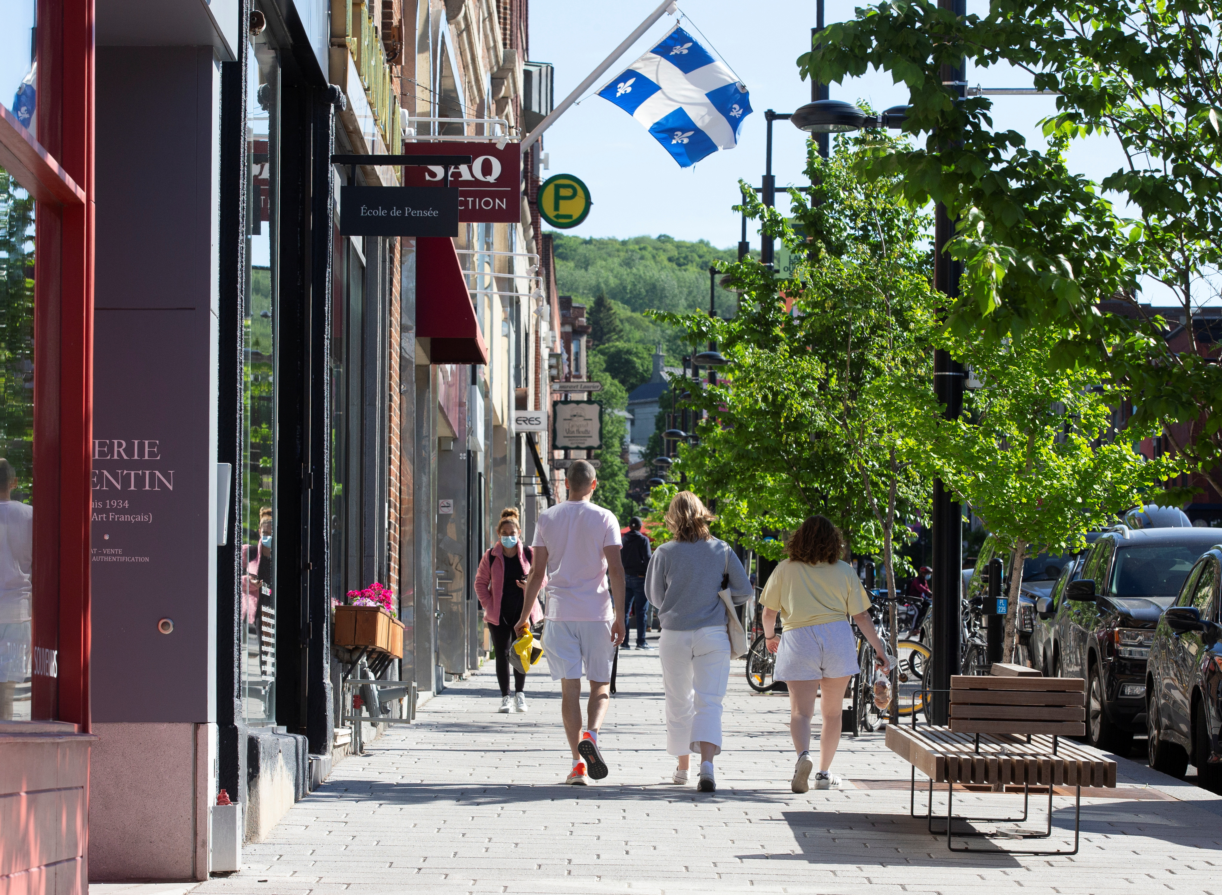 人们在加拿大魁北克省蒙特利尔的街上行走,2021年5月27日拍摄。图片拍摄于2021年5月27日。路透社/Christinne Muschi
