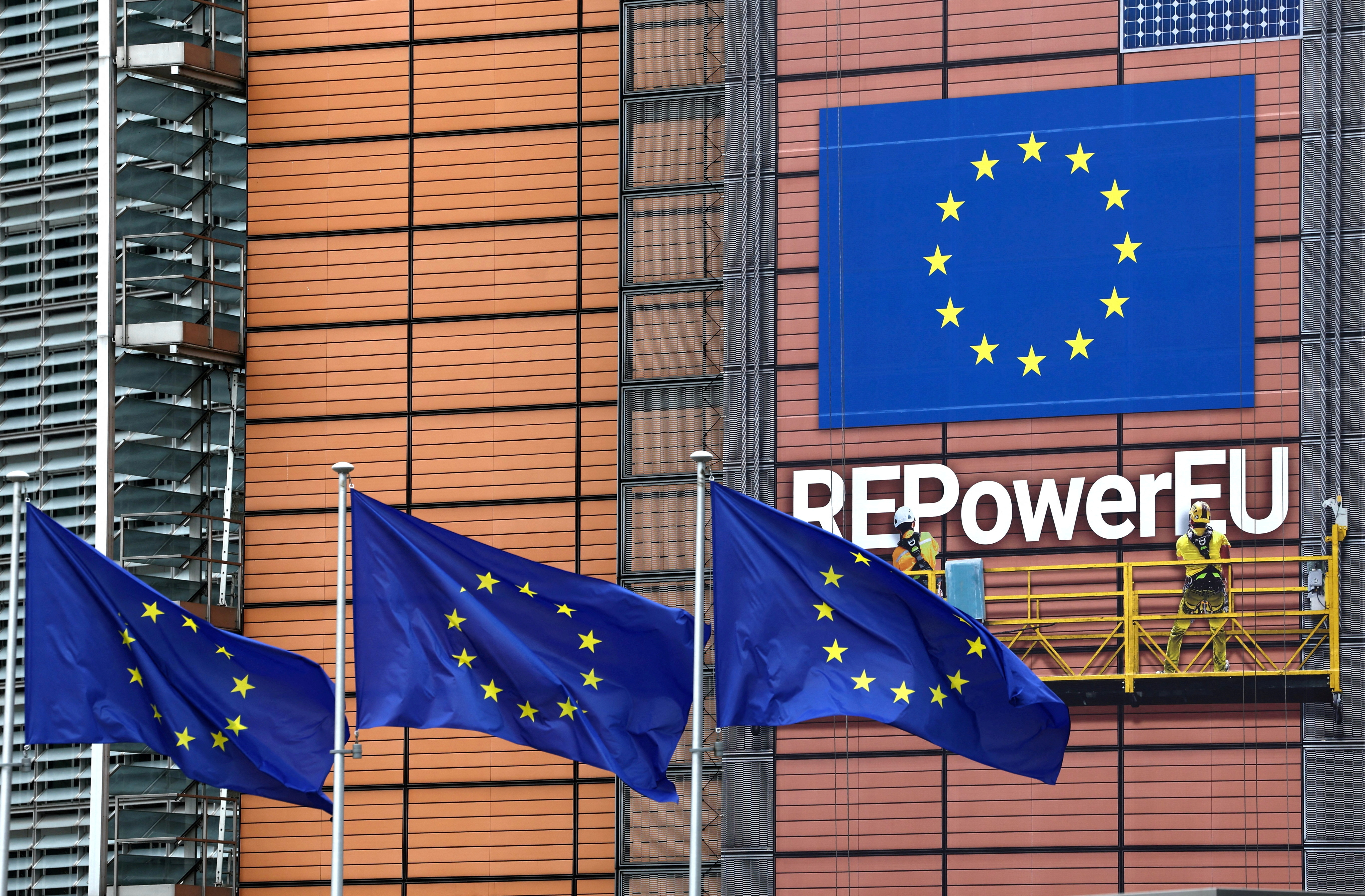 2023年9月20日,比利时布鲁塞尔欧盟委员会总部外飘扬着欧洲国旗。路透社/伊夫·赫尔曼/文件照片