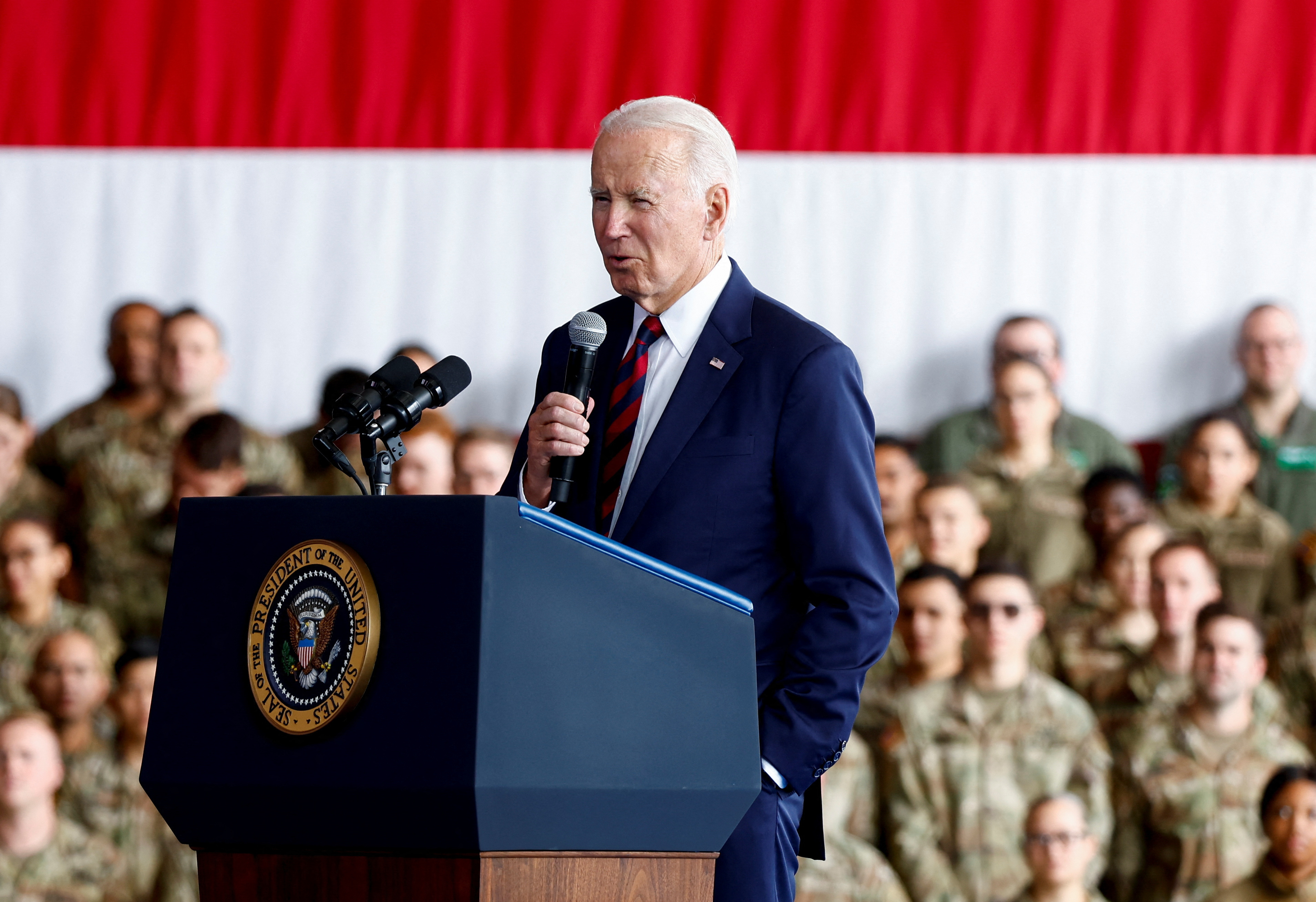 美国总统乔·拜登在阿拉斯加州安克雷奇的埃尔门多夫-理查德森联合基地向服务人员、急救人员和他们的家人发表讲话,纪念2001年9月11日世界贸易中心遇袭22周年。2023年9月11日。路透社/伊夫林… 阅读更多
