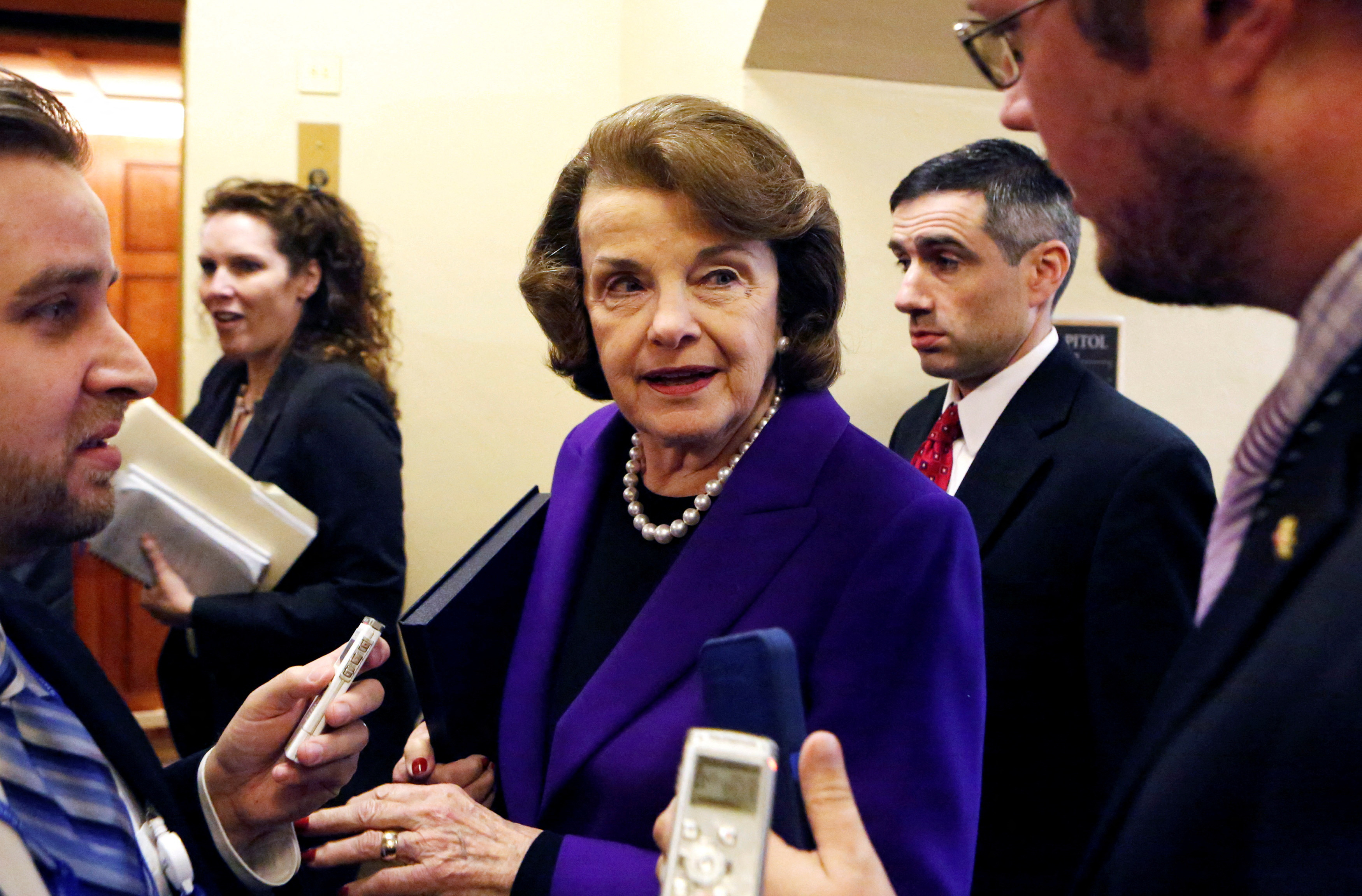 美国参议员黛安·范斯坦(D-CA)(中)在2014年12月9日步行前往华盛顿国会山的参议院会场时对记者说话。中央情报局使用性威胁、水刑和其他严厉手段审讯恐怖主义嫌疑人,但都未能引出关键信息… 阅读更多