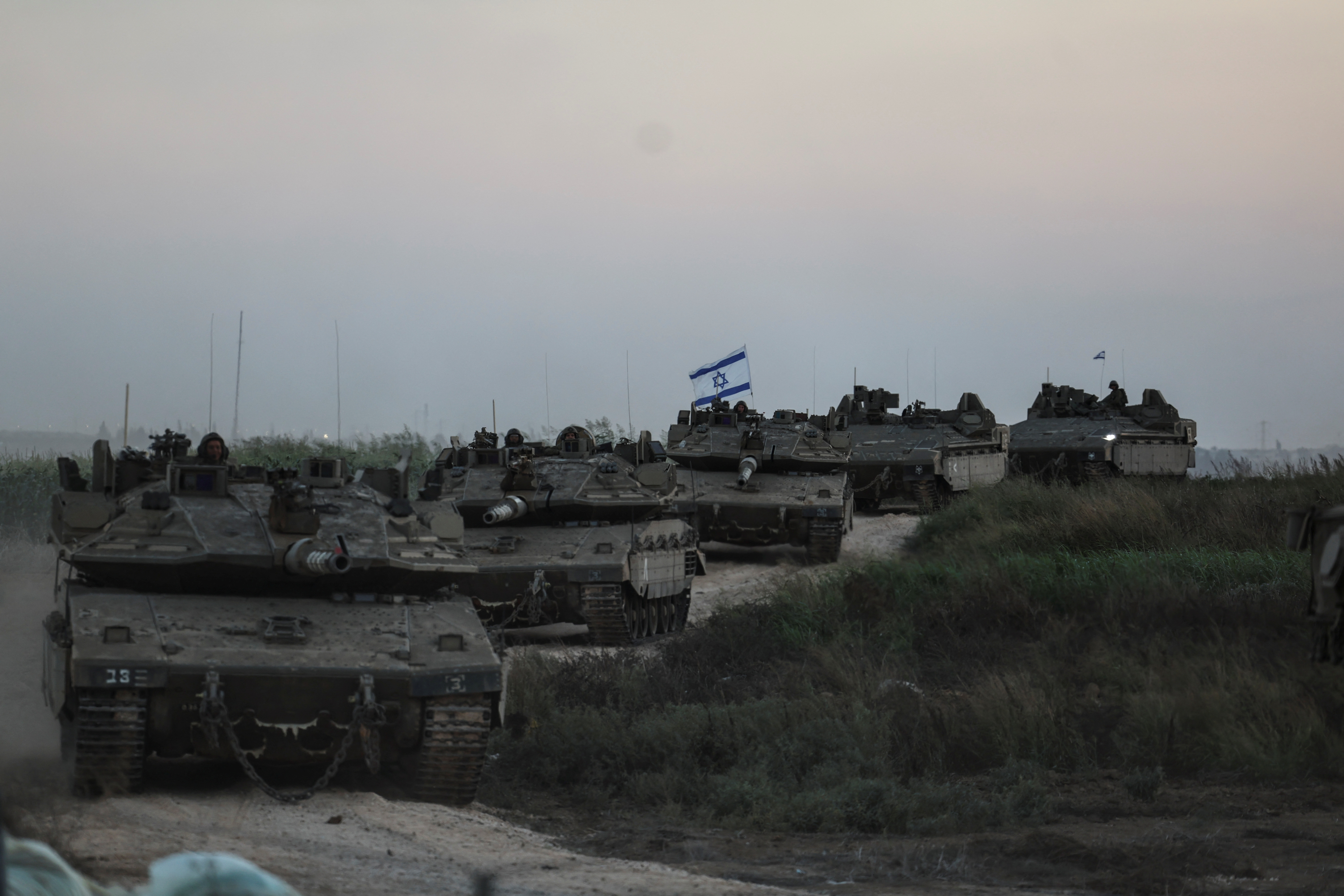 以色列边境炮兵部队的坦克在以色列与加沙地带的边界附近,2023年10月12日,摄影:REUTERS/Ronen Zvulun
