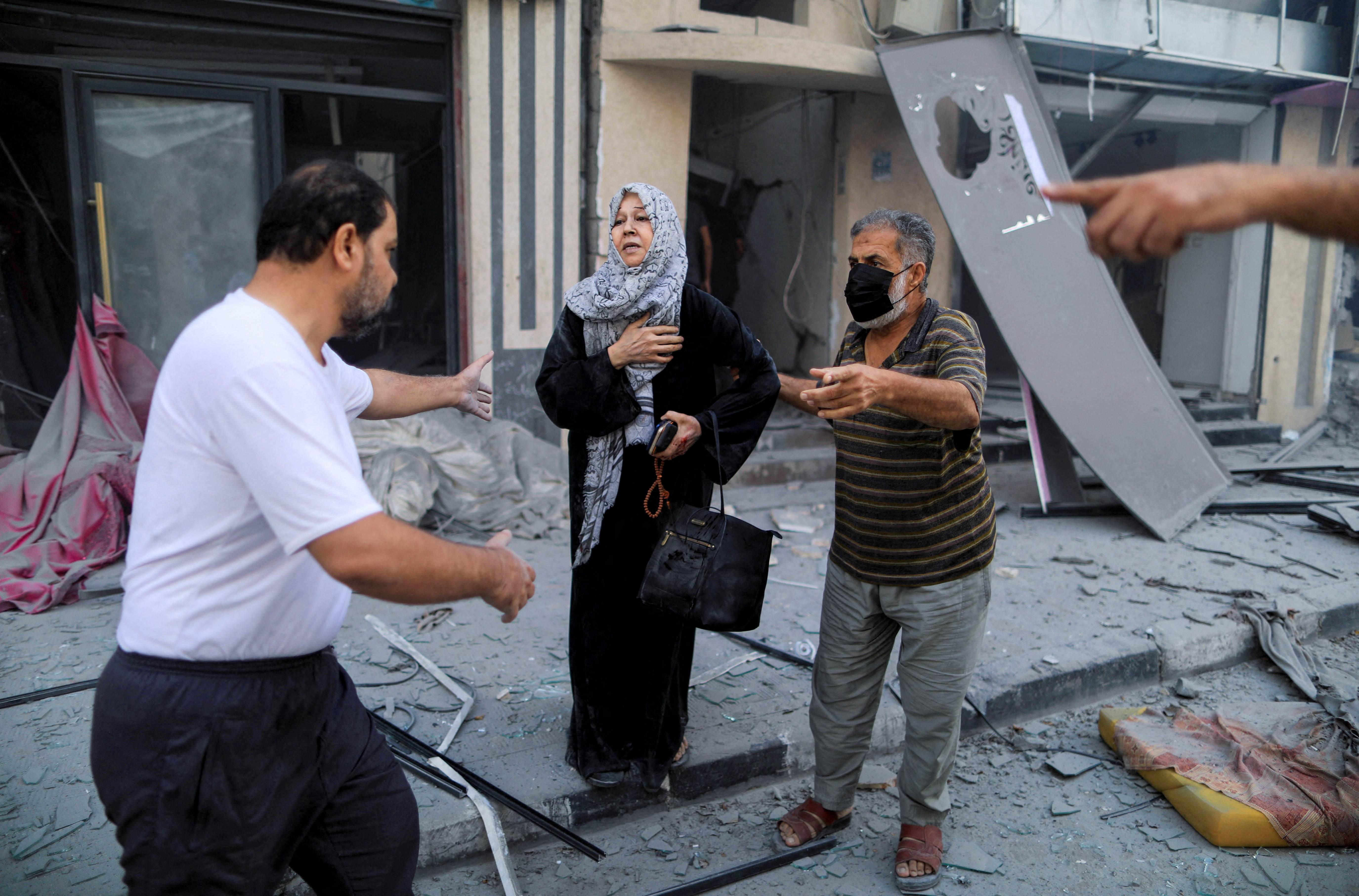 哈马斯告诉人们不要离开,并表示出城的道路不安全。哈马斯称,星期五在运载难民的汽车和卡车遭到袭击,数十人丧生,路透社无法独立核实。以色列表示哈马斯阻止人们离开,以便将他们用作人体盾牌,而哈马斯对此予以否认。