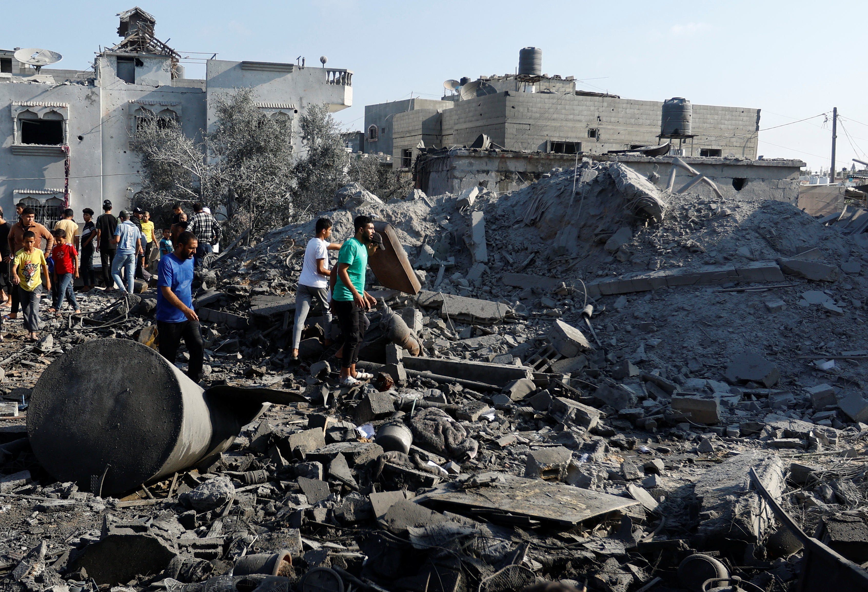 在以色列下令撤离的加沙城某个社区,居民称,夜间战机发射的炸弹袭击了几栋房屋。