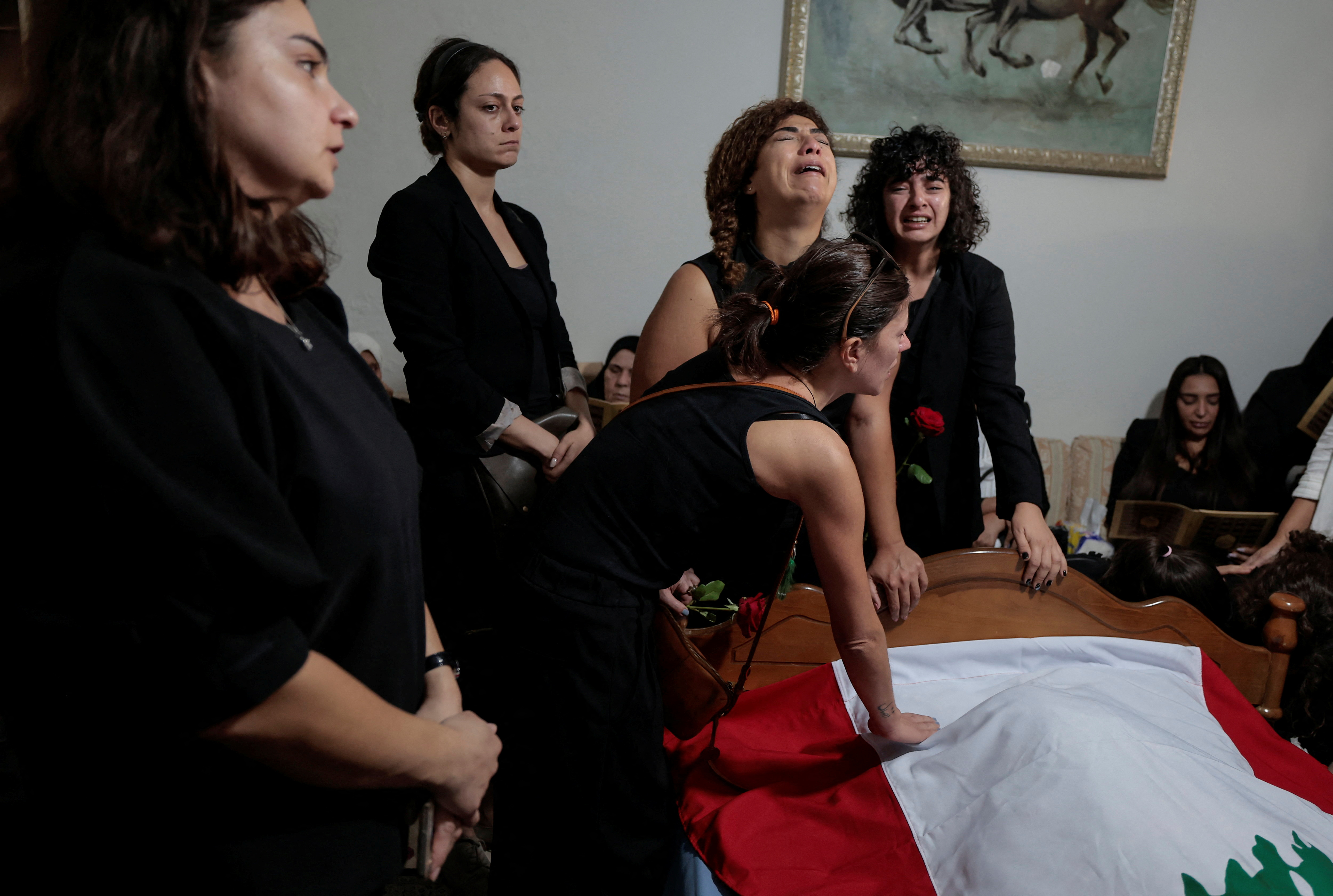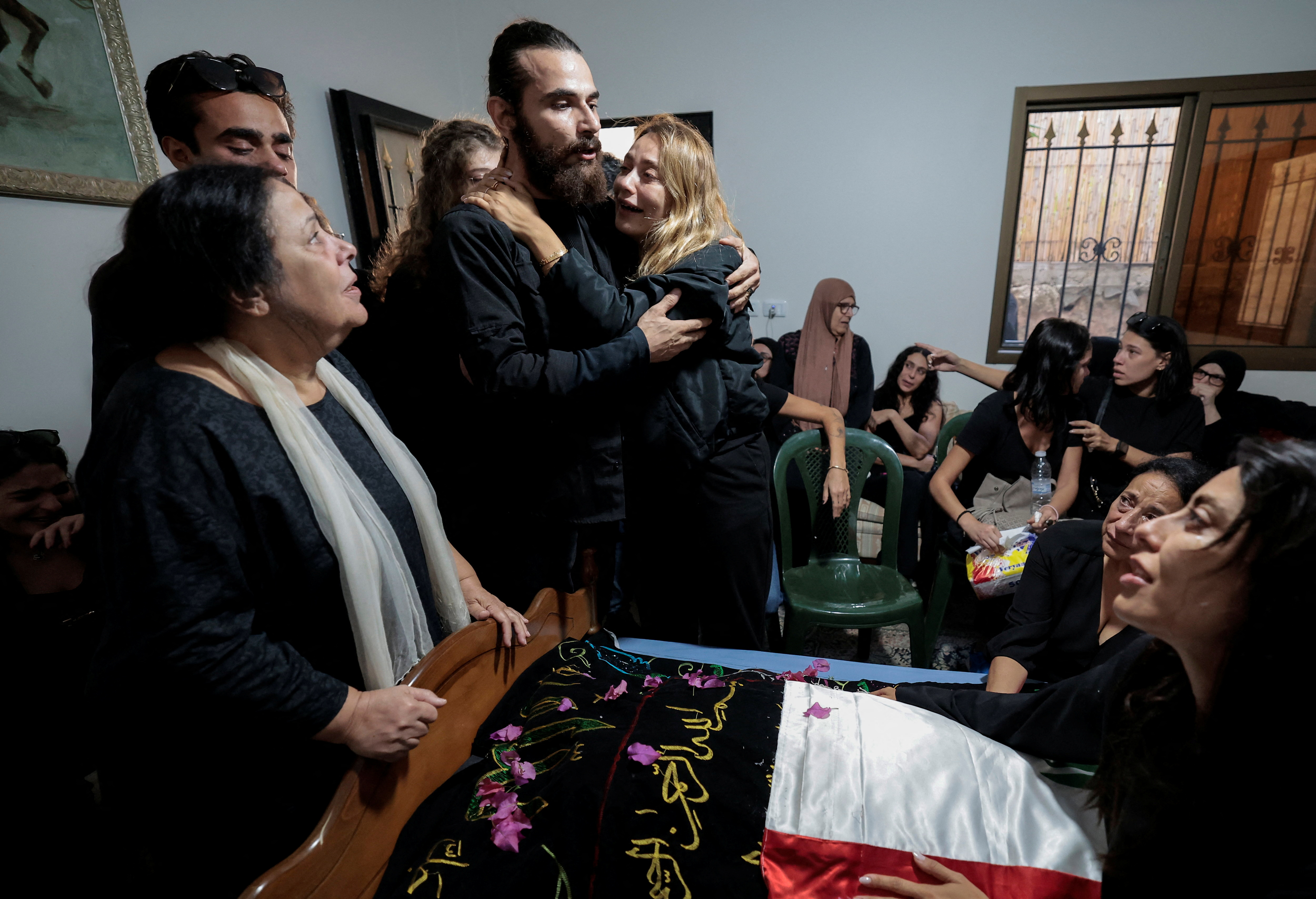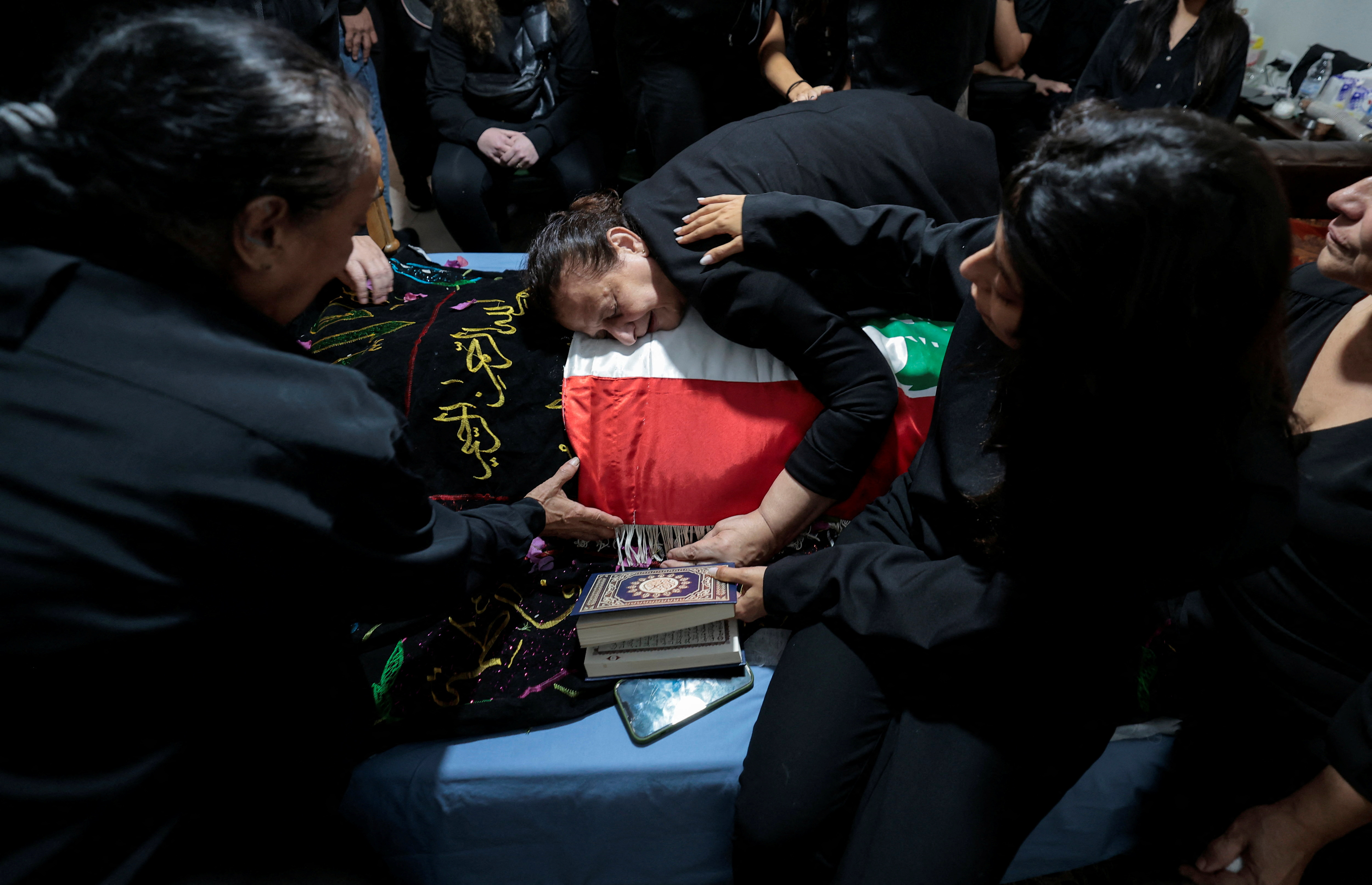 阿里和阿比尔为他们的兄弟伊萨姆·阿卜杜拉哀悼,他是黎巴嫩国民和路透社视频记者,于2023年10月14日在黎巴嫩南部被以色列方向的炮击击毙,他的葬礼在黎巴嫩家乡阿尔基亚姆举行。路透社/佐赫拉·本塞姆拉摄