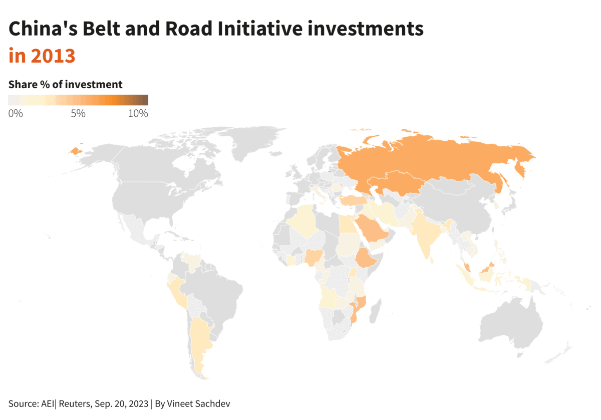 “回到2013年 - 中国绝对是崛起的 - 习近平预测中国企业在全球范围内扩张会带来丰厚利润,但一些严重的冲击真正影响了一带一路的影响力和广度,”牛津大学的马修·伊利说。