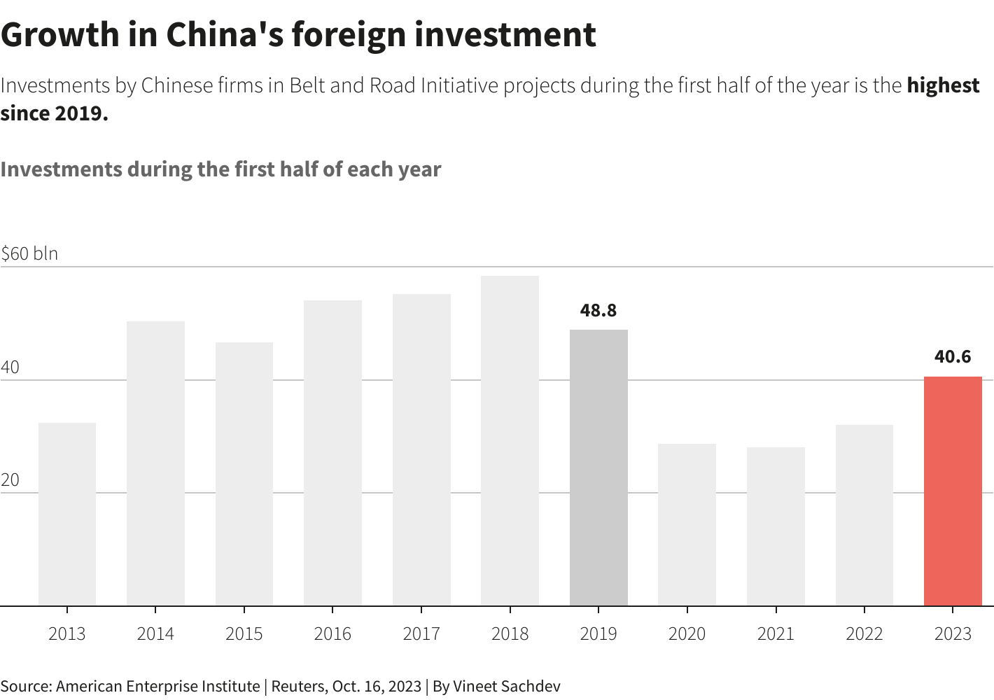 北京,10月16日(路透社) - 当中国在10年前启动其一带一路倡议时,它吹捧与西欧的巨额基础设施支出,就在2019年,英国时任财政大臣曾表示这种支出“在传播繁荣和可持续发展方面有巨大潜力”。