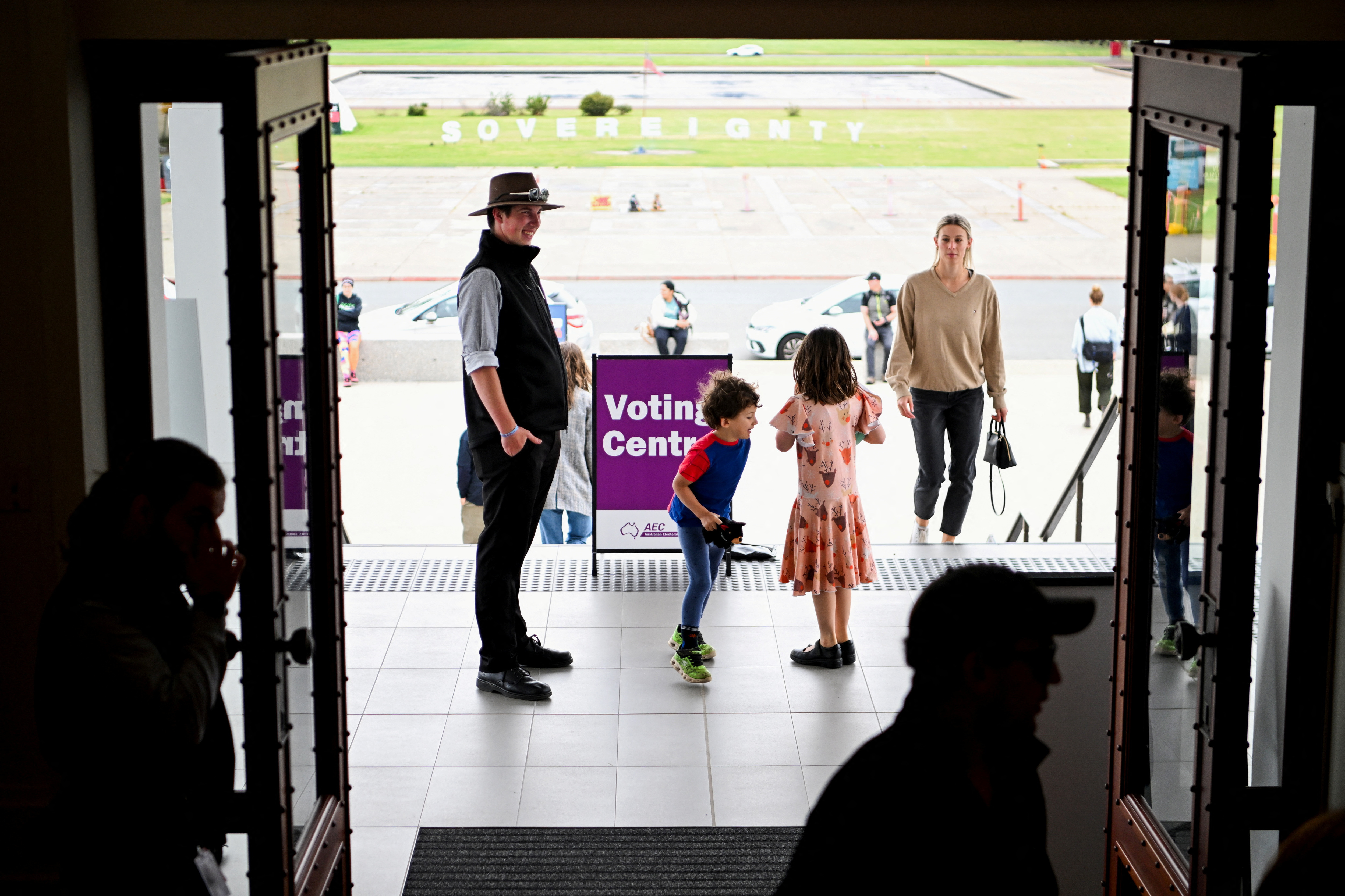 选民在澳大利亚堪培拉的旧议会大厦投票,参与“声音”公投,2023年10月14日。路透社/Tracey Nearmy