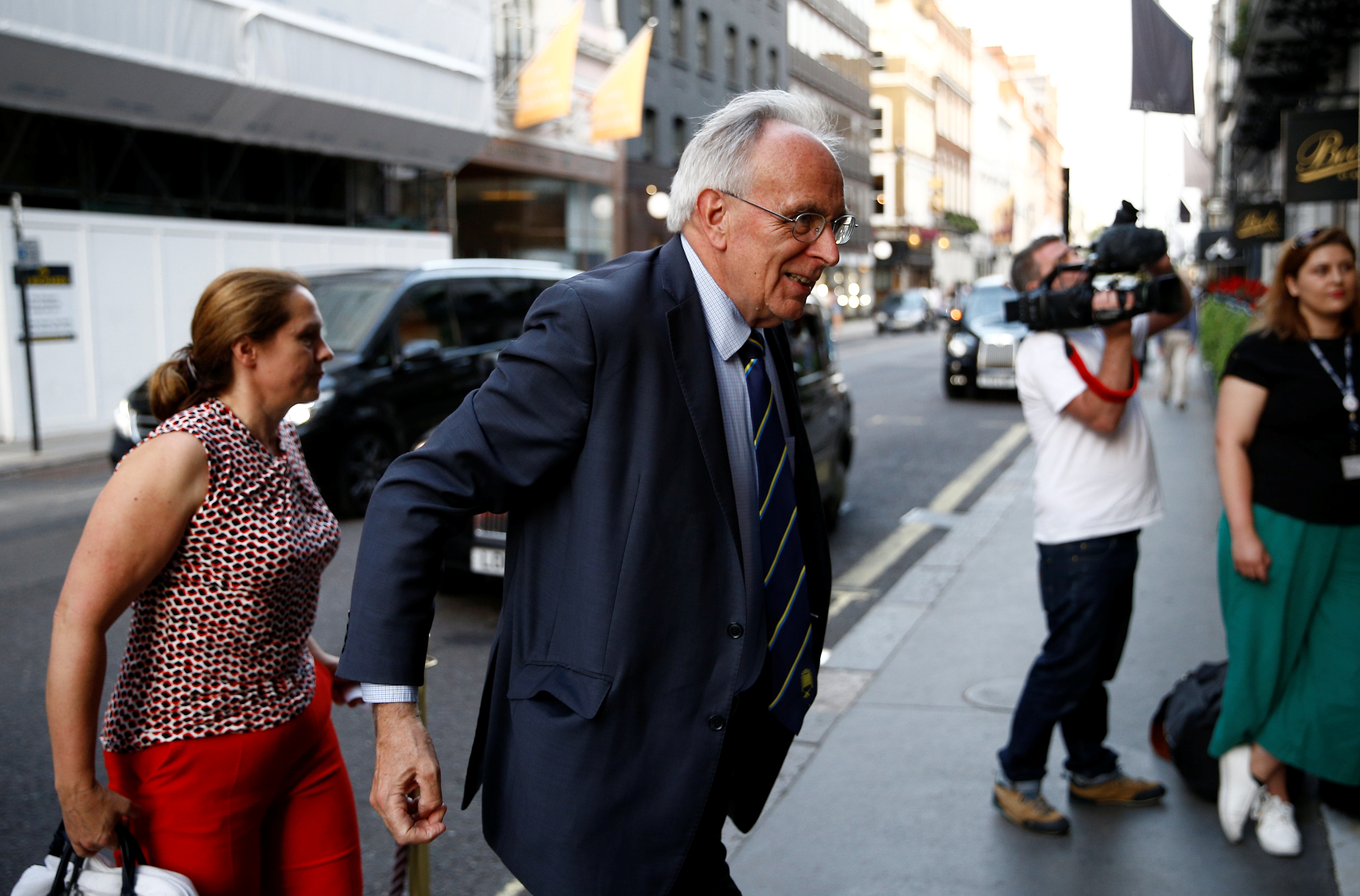 议会议员彼得·邦(Peter Bone)抵达伦敦市中心参加由英国保守党领袖鲍里斯·约翰逊(Boris Johnson)出席的私人招待会,摄于2019年7月23日,英国伦敦。路透社/亨利·尼科尔斯/档案照片