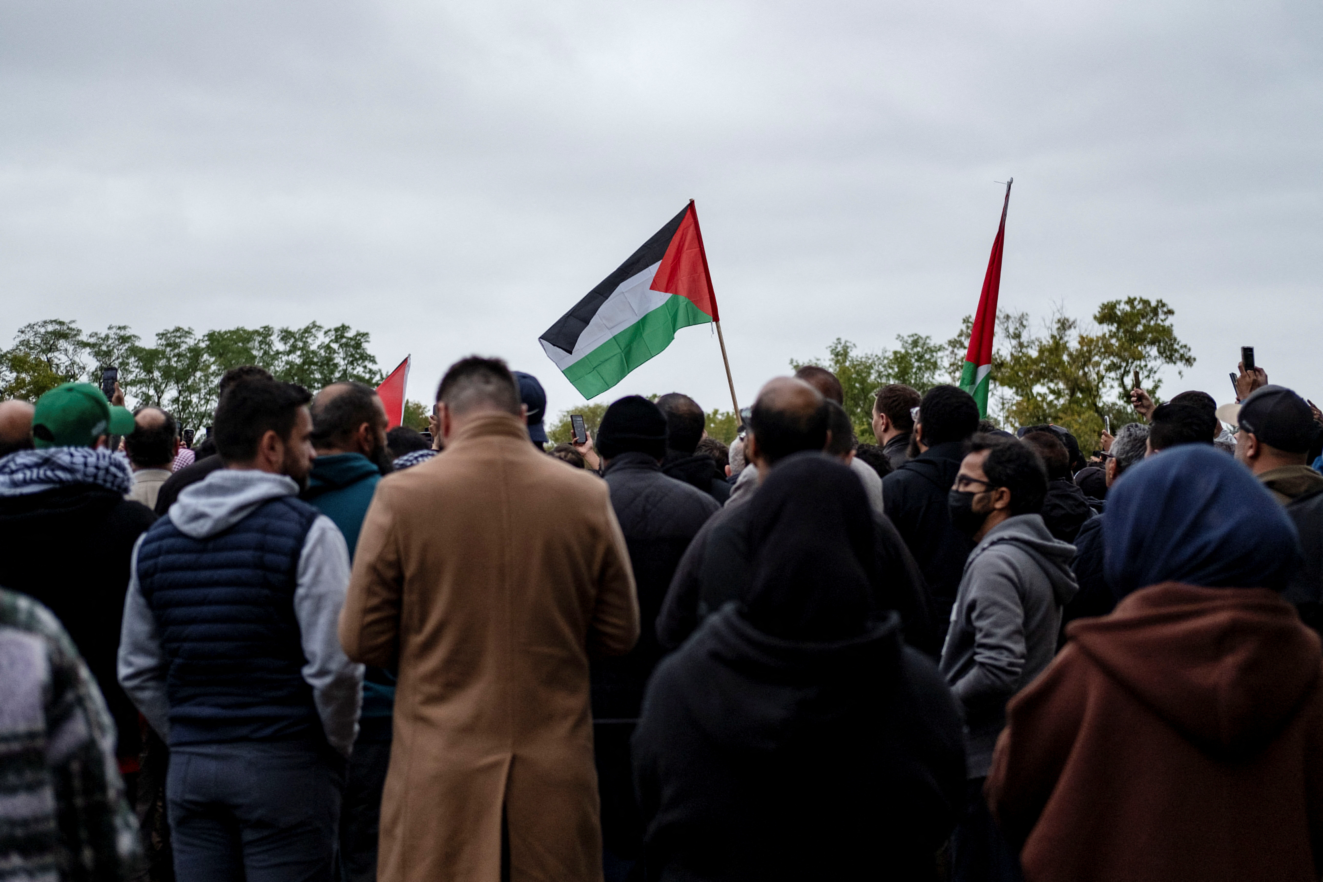 在清真寺的地下室,妇女和儿童聚集在一起哭泣,而外面,数十人围在演讲者周围,其中包括两名挥舞巴勒斯坦国旗的男子。哀悼者在葬礼现场高呼“自由巴勒斯坦”。