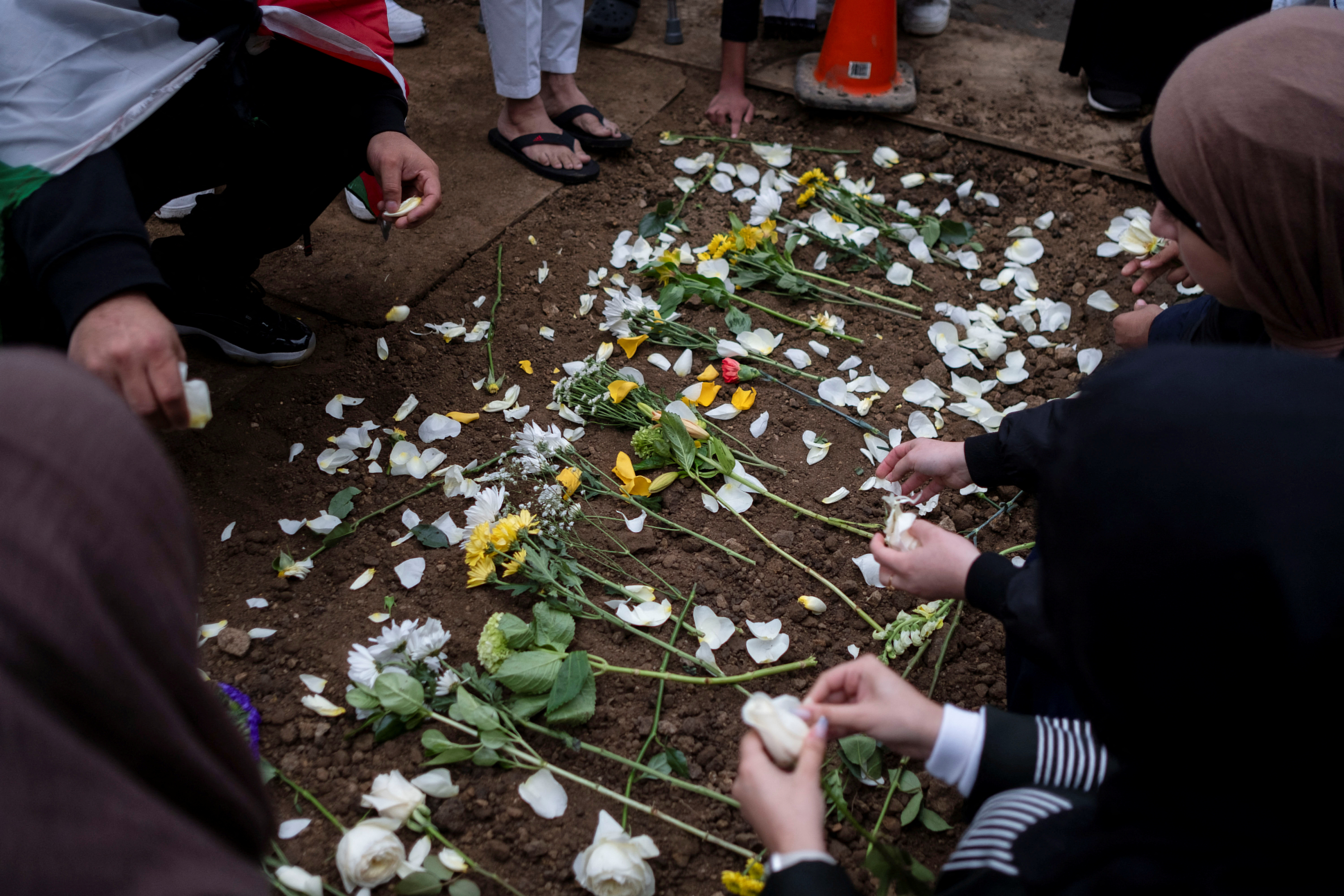 伊利诺伊州布里奇维尤(Bridgeview),2023年10月16日(路透社)-星期一,泪流满面的哀悼者聚集在一座清真寺里祈祷,并在一名6岁的穆斯林男孩的墓地上放置了白色和黄色的玫瑰,这名男孩被一名警方称为因为他和他的母亲是巴勒斯坦裔美国人而被瞄准的男子刺死。