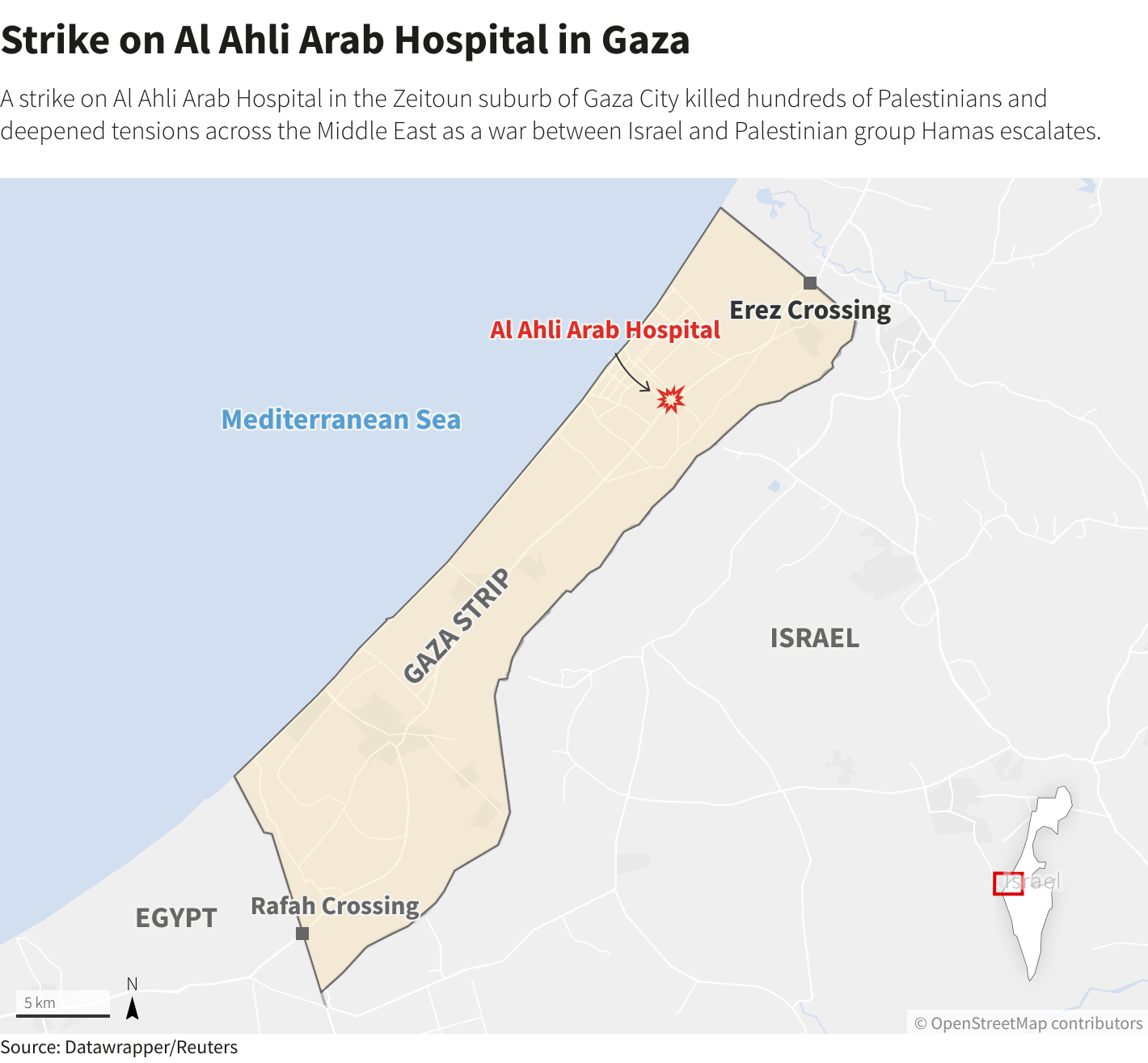 以色列人和巴勒斯坦人互相指责对医院的轰炸。