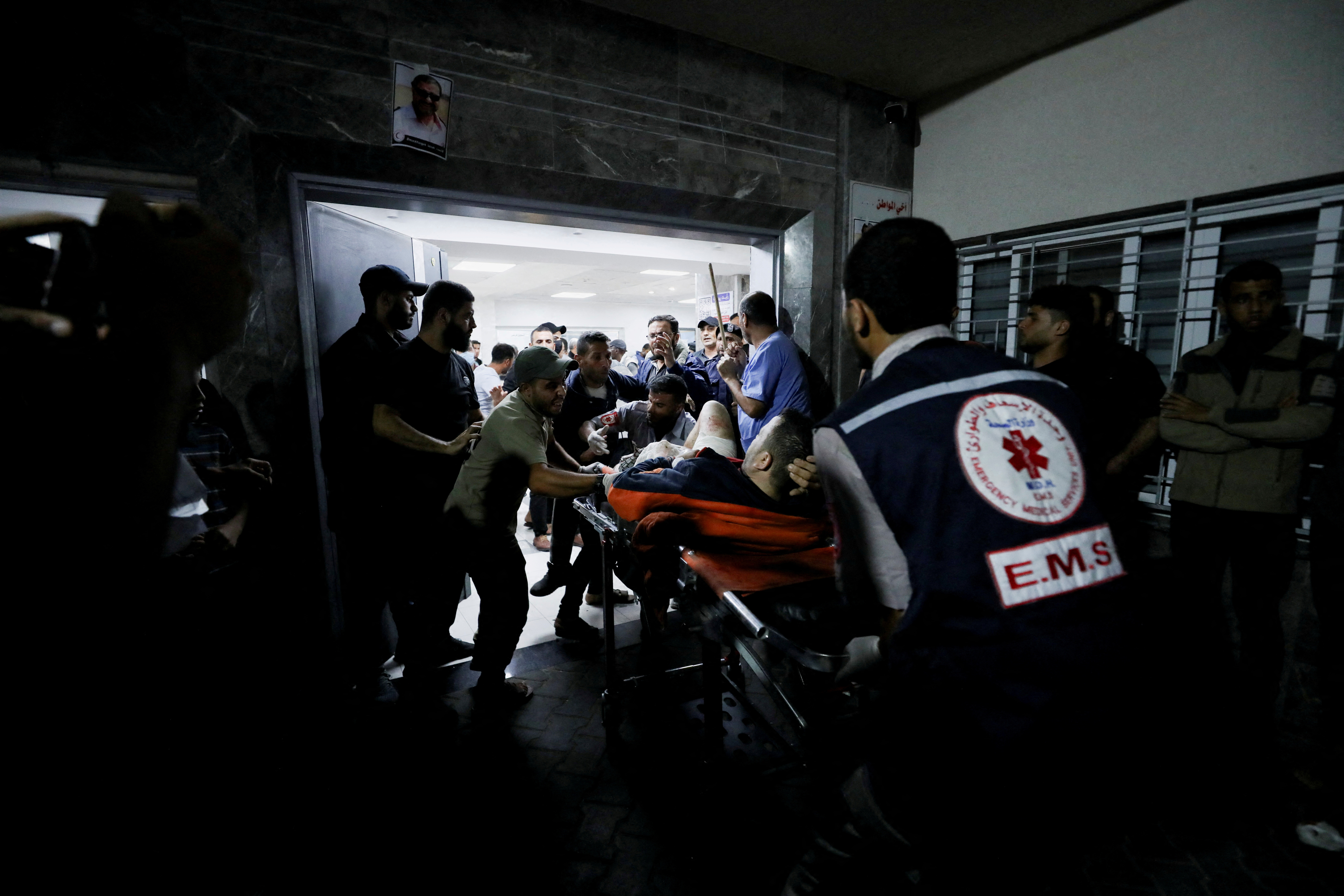 在加沙市的什叶法医院协助数百名巴勒斯坦人在阿赫利医院爆炸中丧生后,以色列和巴勒斯坦官员互相指责,加沙地带,2023年10月17日。路透社/穆罕默德·阿尔-马斯里摄