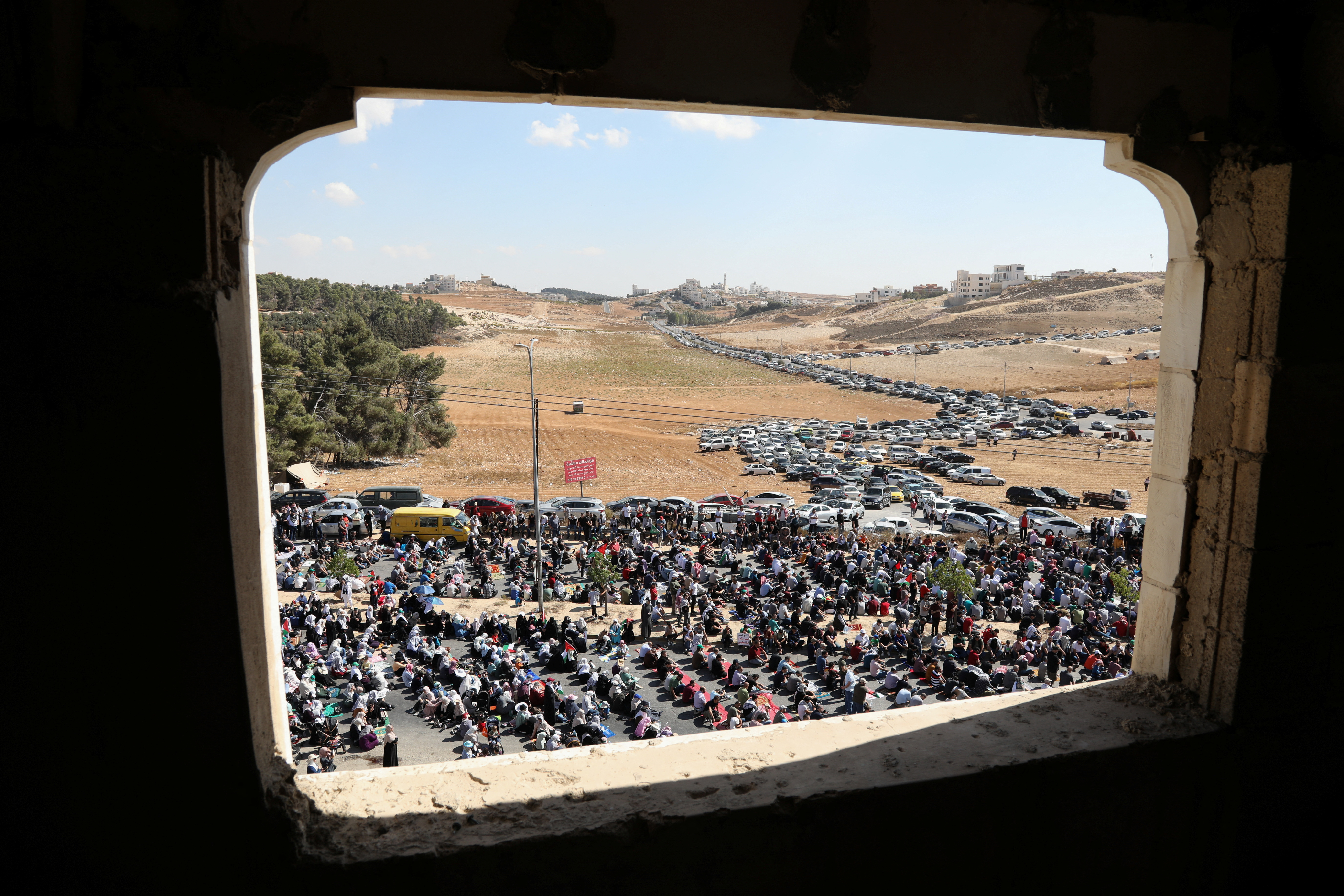 星期五在安曼,数千人也聚集在以色列大使馆附近,这是巴勒斯坦领土动荡时期反以色列抗议的常见地点。